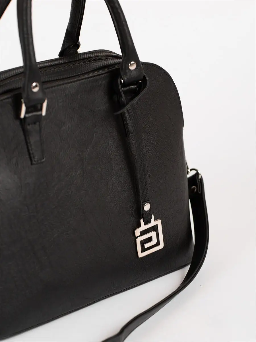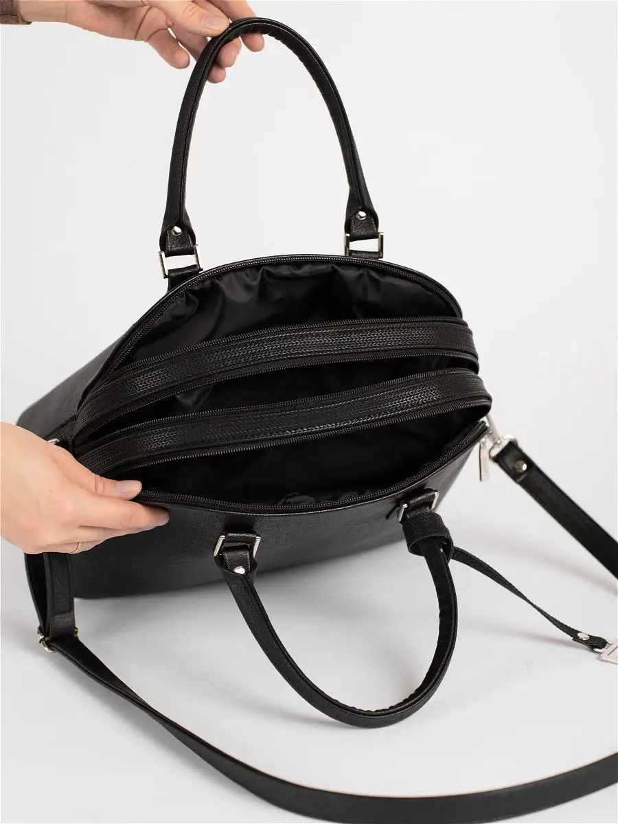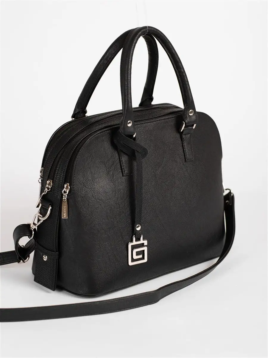 Сумка формованная выполнена из искусственной кожи. Снаружи: На задней стенке карман на молнии. Имеется плечевой ремень. Внутри: Три отделения на молнии. На задней стенке большой вместительный карман на молнии, на передней стенке карман для мелочей. Размер 23*31*15.
