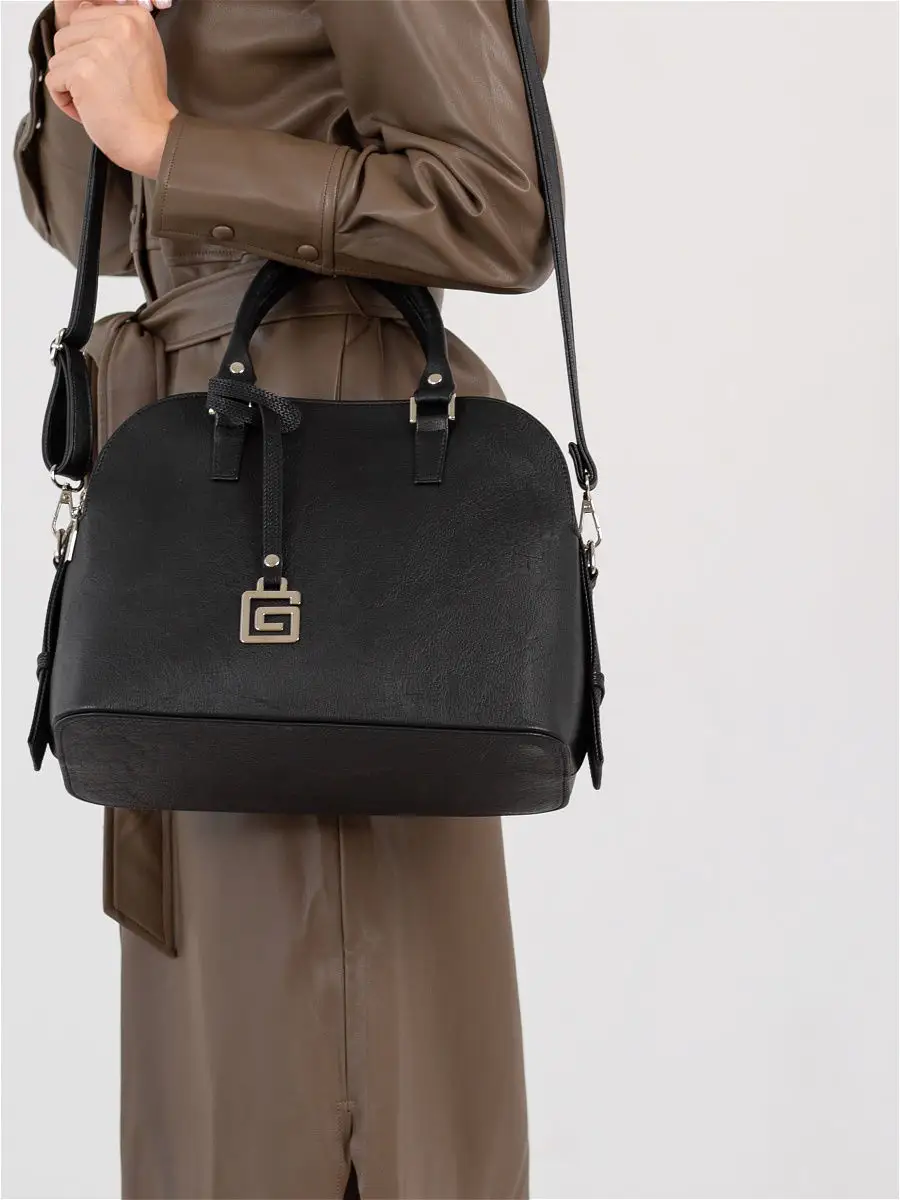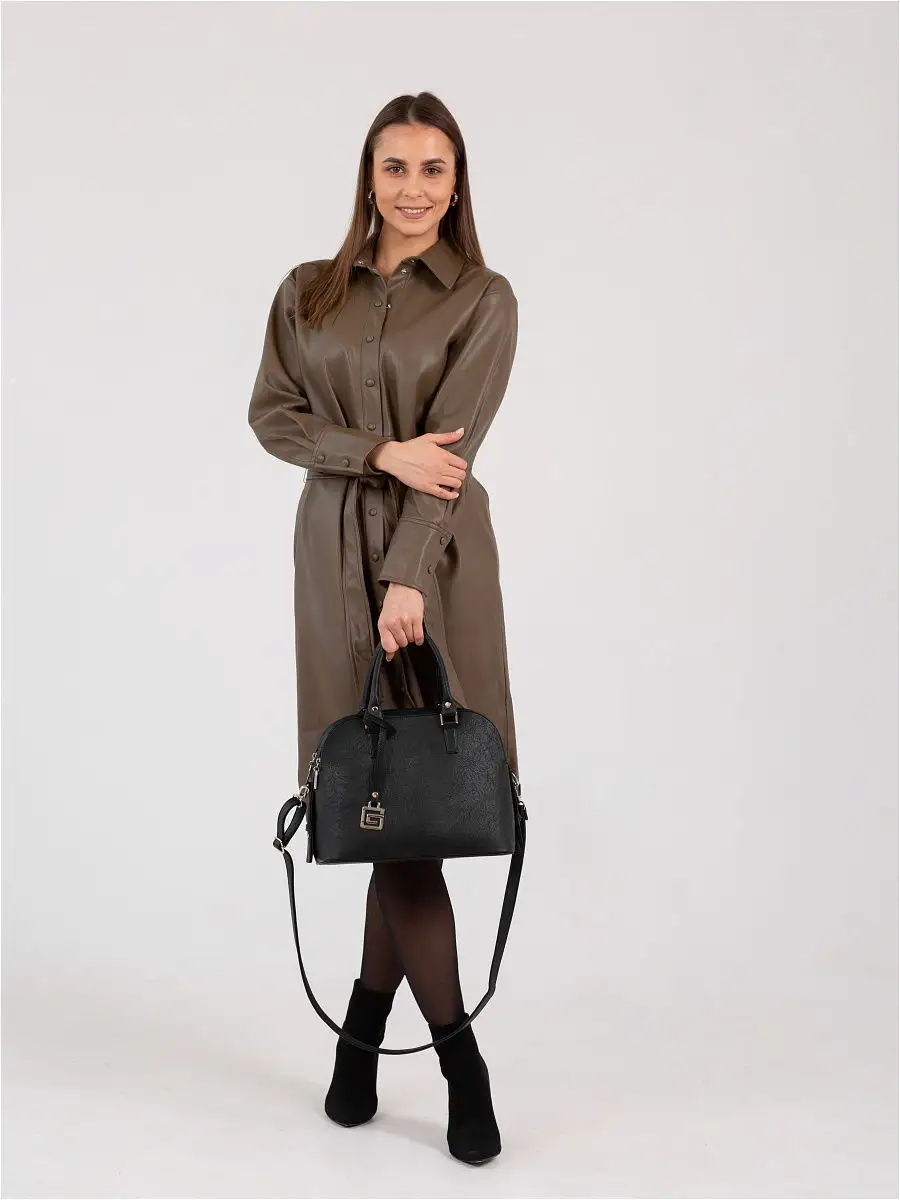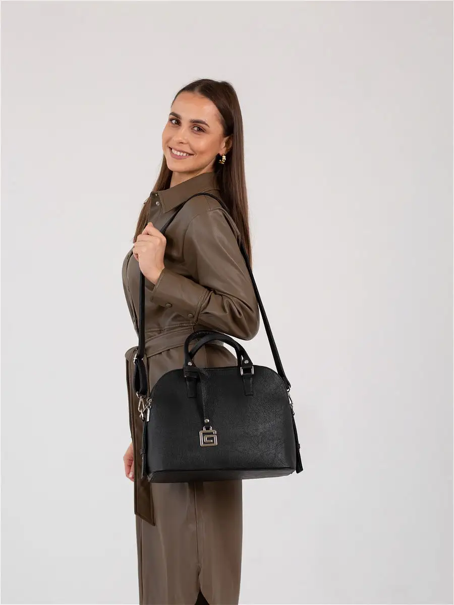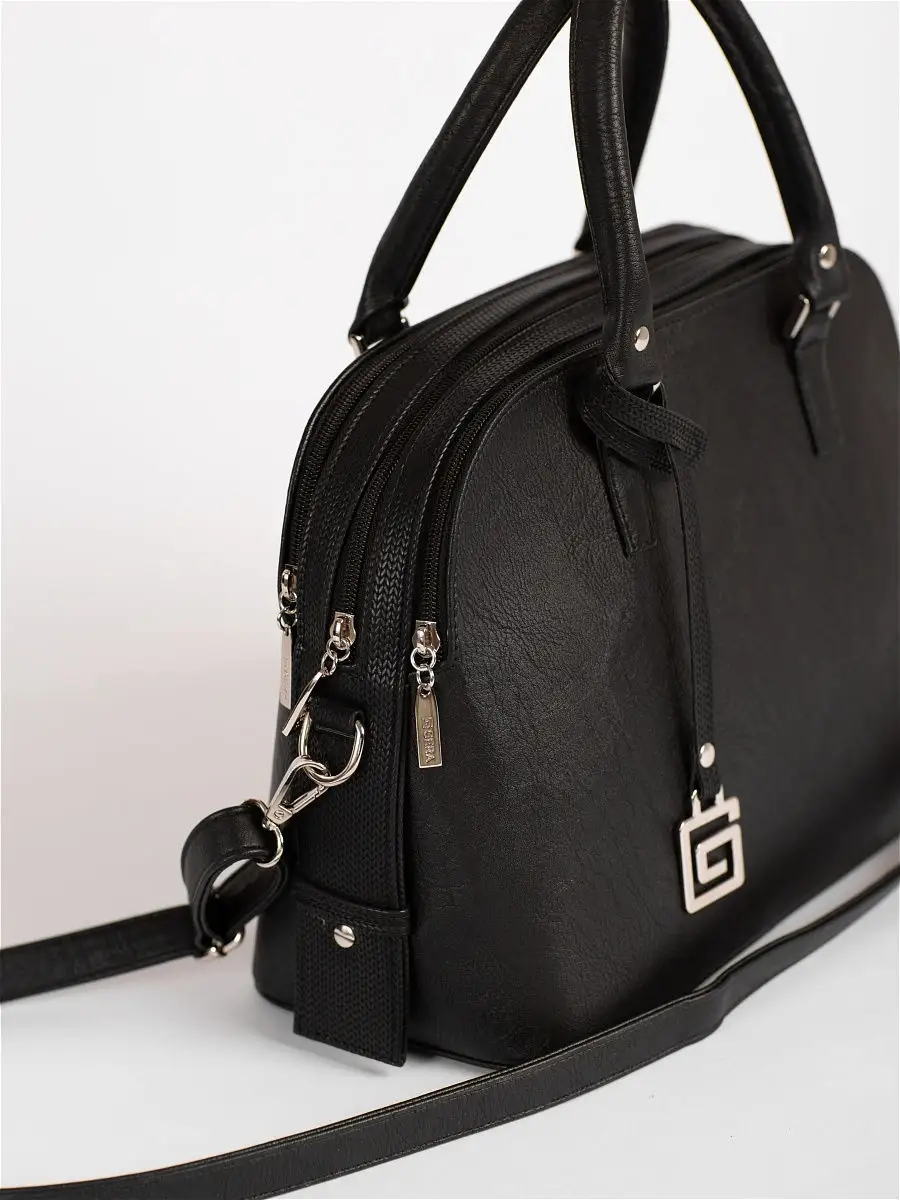 Сумка формованная выполнена из искусственной кожи. Снаружи: На задней стенке карман на молнии. Имеется плечевой ремень. Внутри: Три отделения на молнии. На задней стенке большой вместительный карман на молнии, на передней стенке карман для мелочей. Размер 23*31*15.