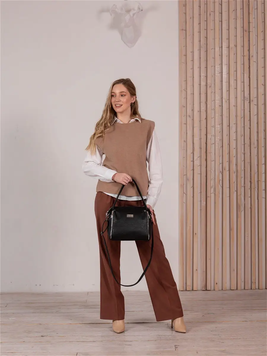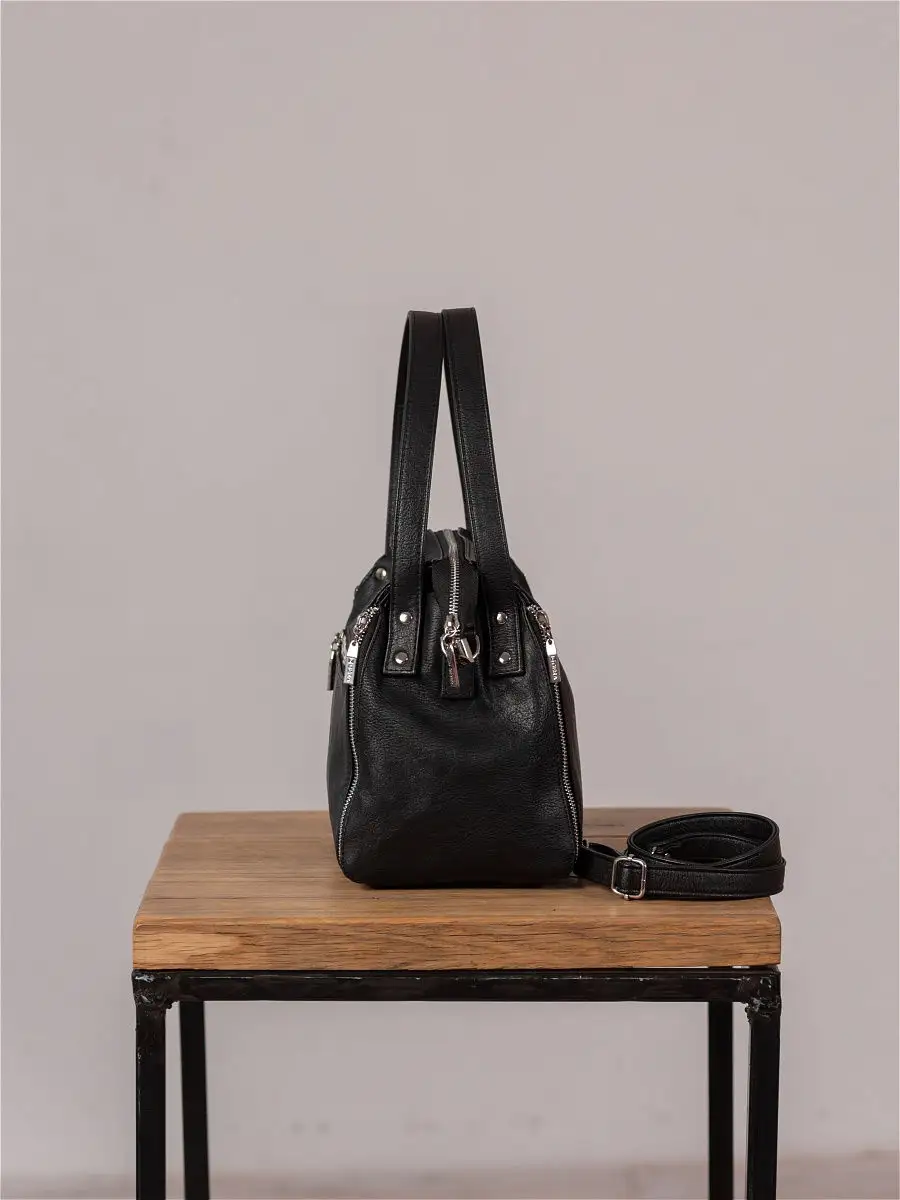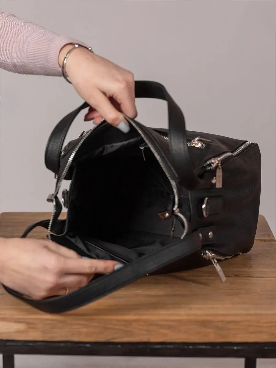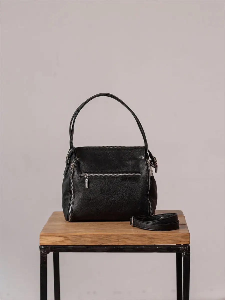 Универсальная, удобная и стильная сумочка. Произведена из материала - искусственная кожа, которая по своим свойствам не уступает натуральной. Сумка состоит из одного отделения, которое закрывается на металлическую молнию. Размеры 22*28*13 см, имеется внешний карман на задней стенки сумки и декоративные замочки по бокам. Лучше всего модель сочетается с луками в стиле кэжуал. Когда понадобится освободить руки, просто пристегните к аксессуару съемный плечевой ремень (длина 120 см), а также возможно носить изделие на руке или локтевом сгибе (высота 18 см).