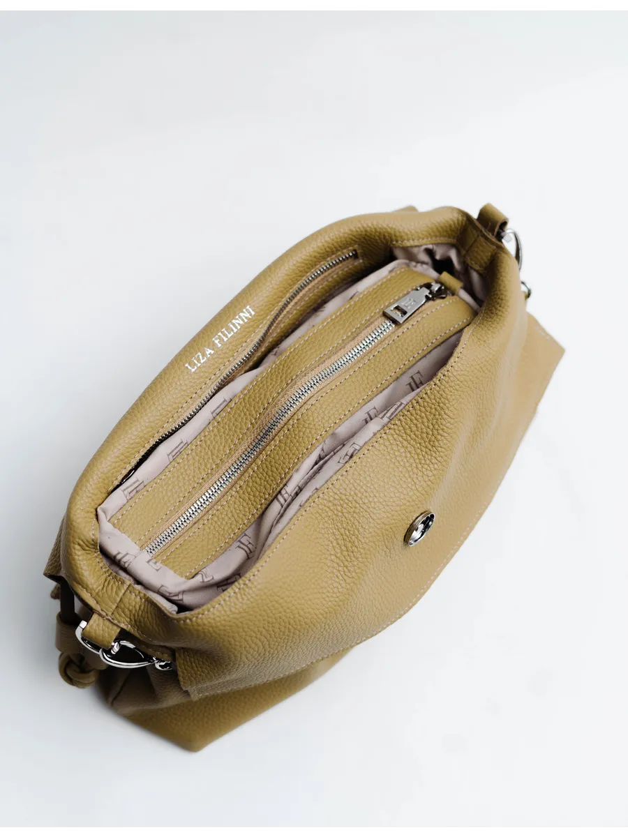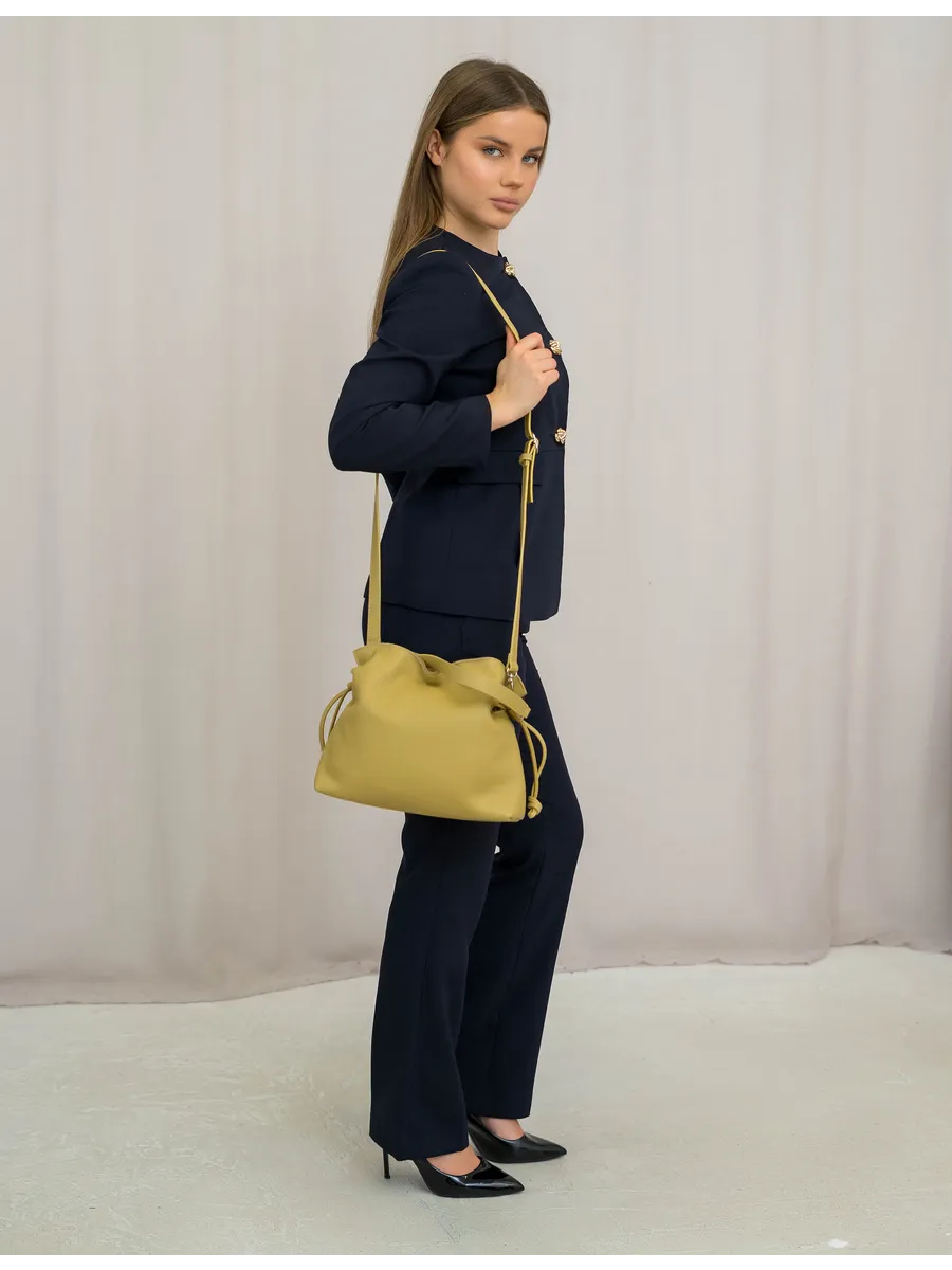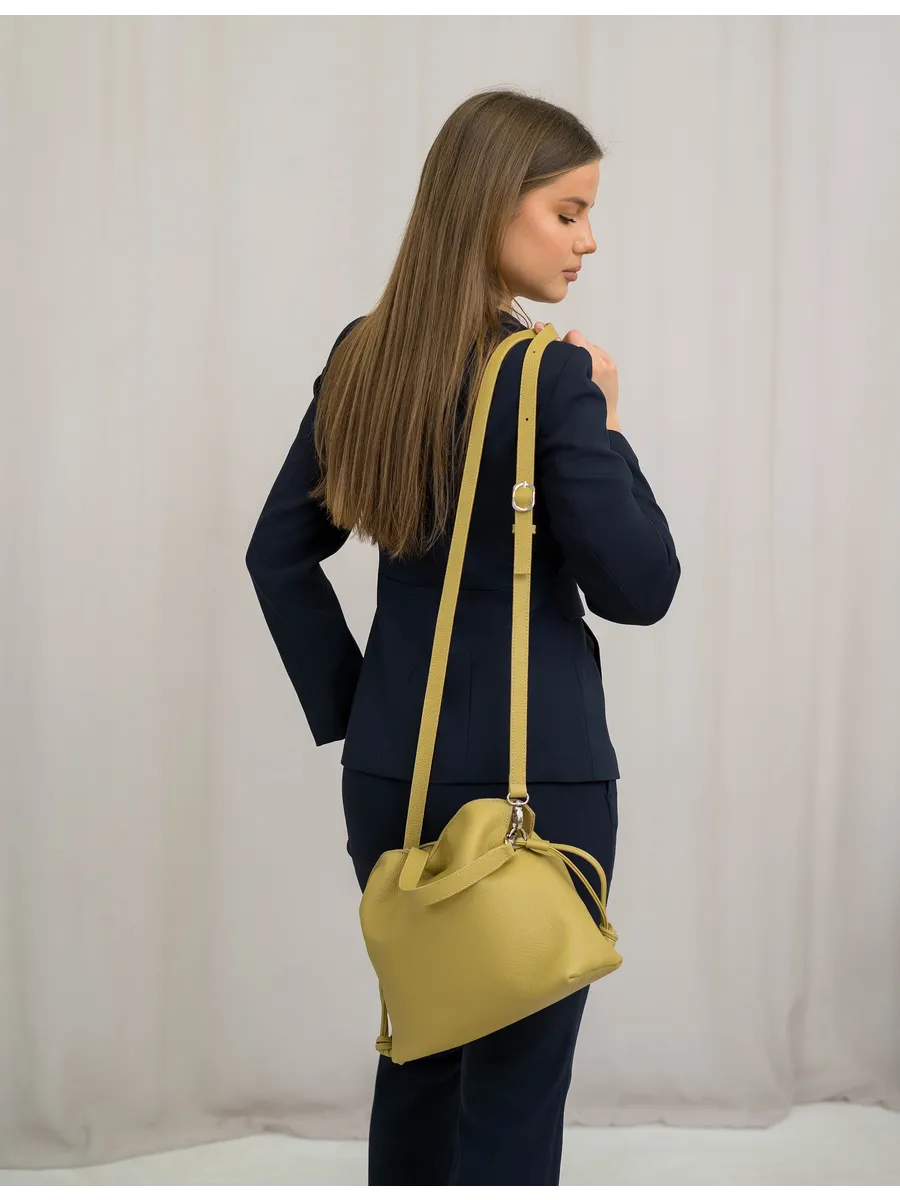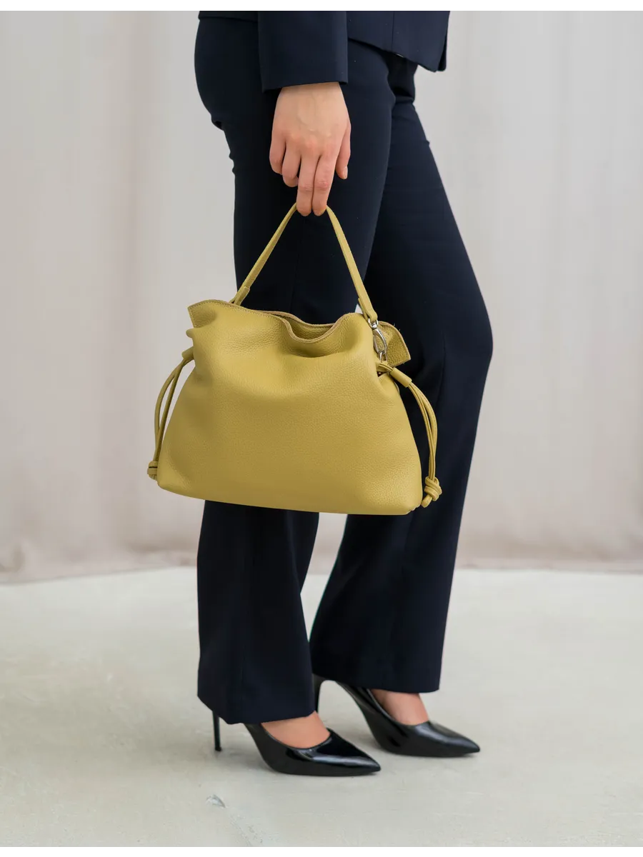 Женская сумка мешок через плечо из натуральной кожи – элегантный и практичный аксессуар, которые ценят качество и стиль. Средний размер делает её удобной в повседневной жизни: в неё легко помещаются документы, телефон, косметика и другие необходимые вещи.