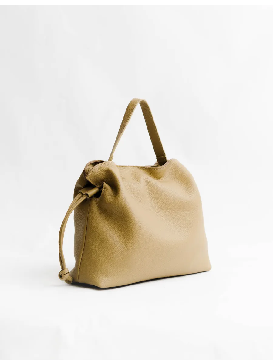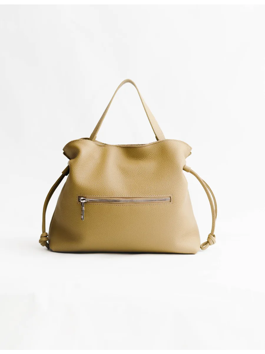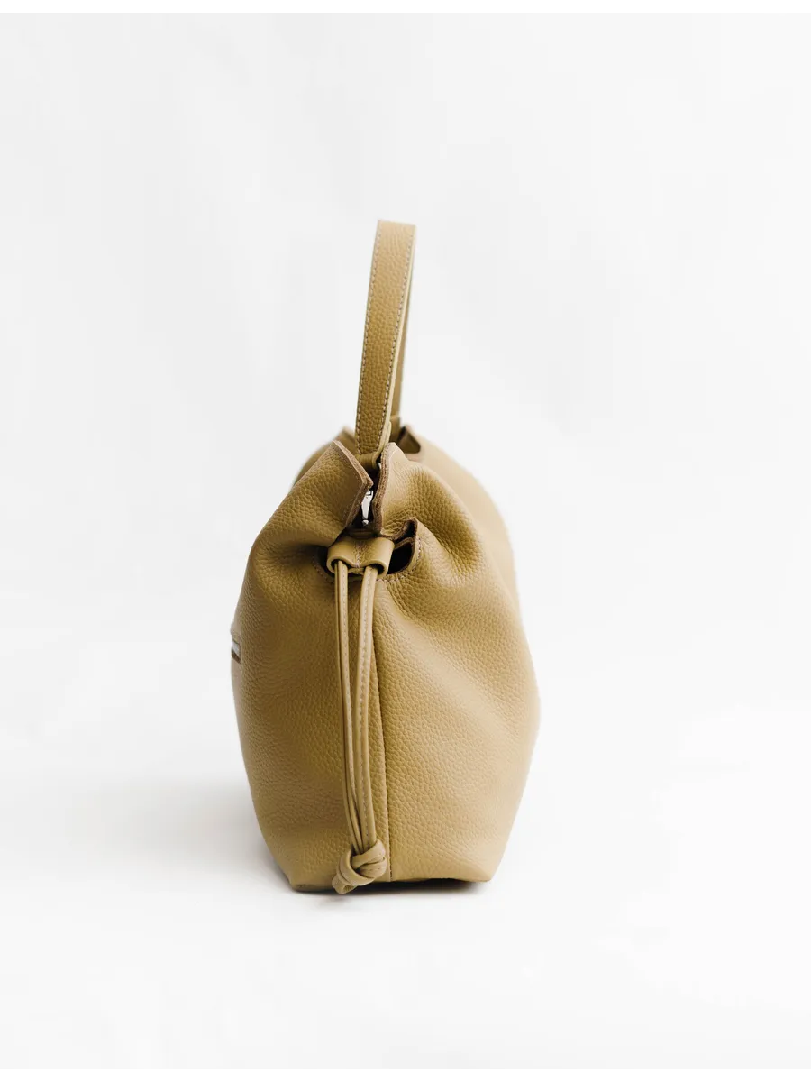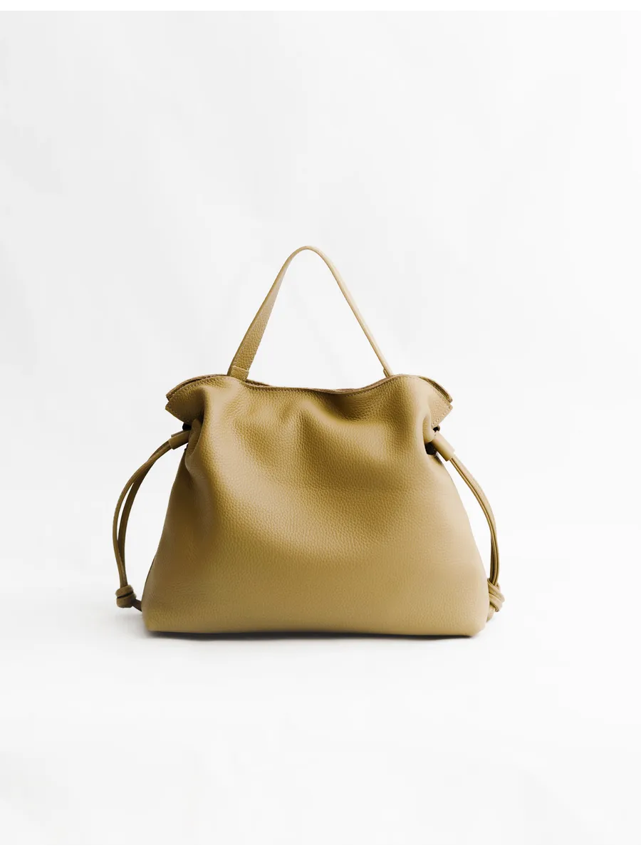Женская сумка мешок через плечо из натуральной кожи – элегантный и практичный аксессуар, которые ценят качество и стиль. Средний размер делает её удобной в повседневной жизни: в неё легко помещаются документы, телефон, косметика и другие необходимые вещи.