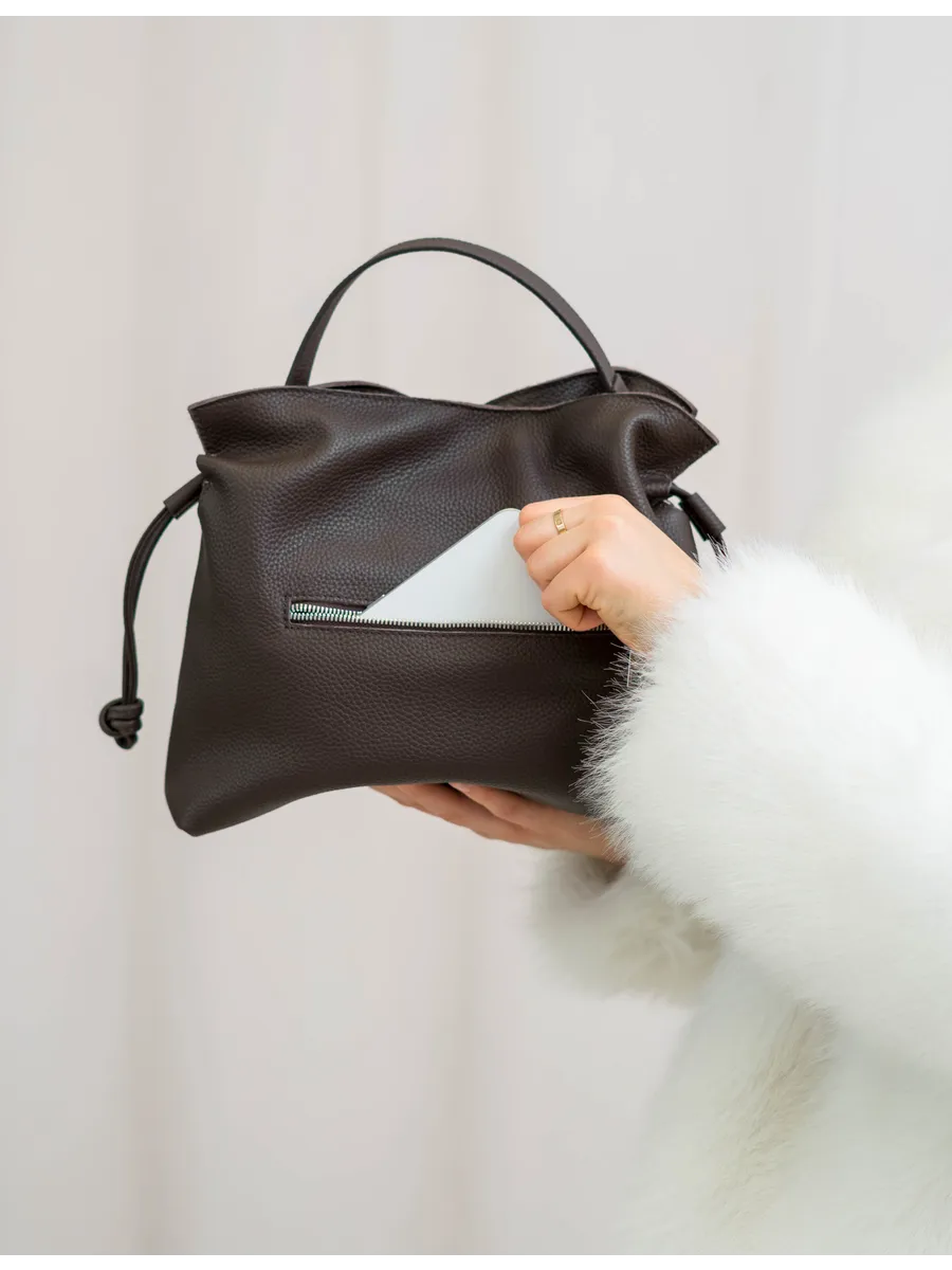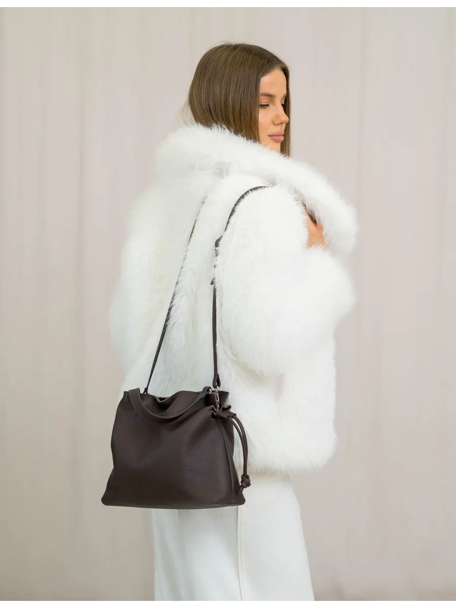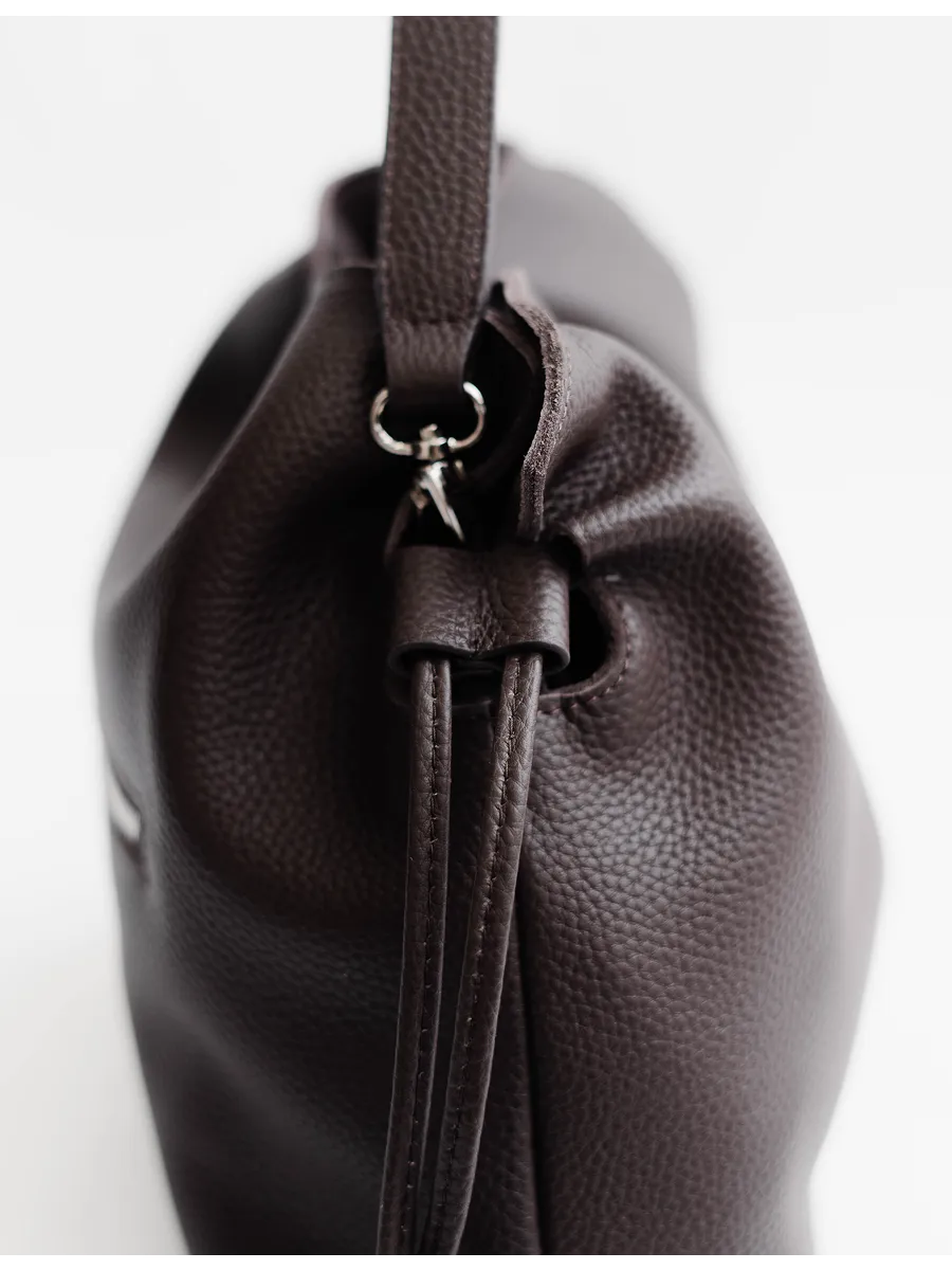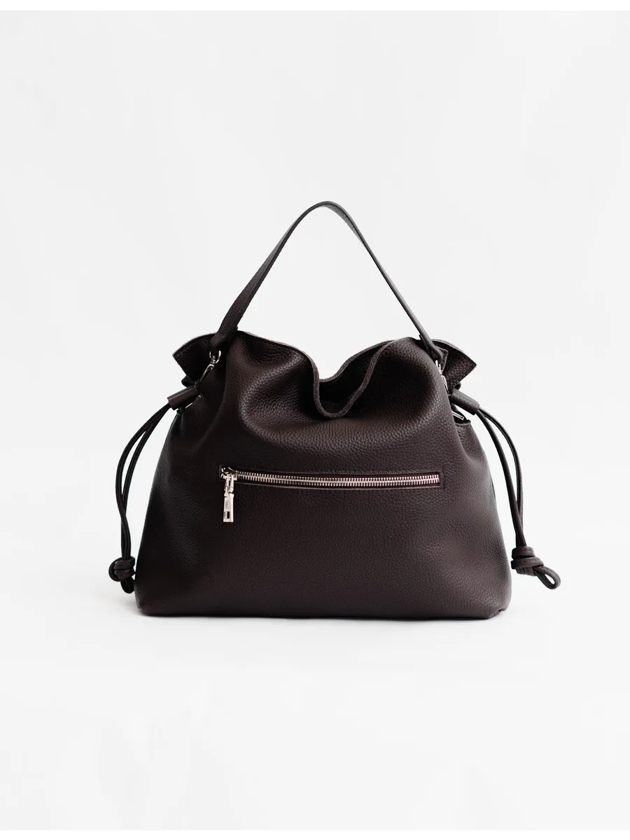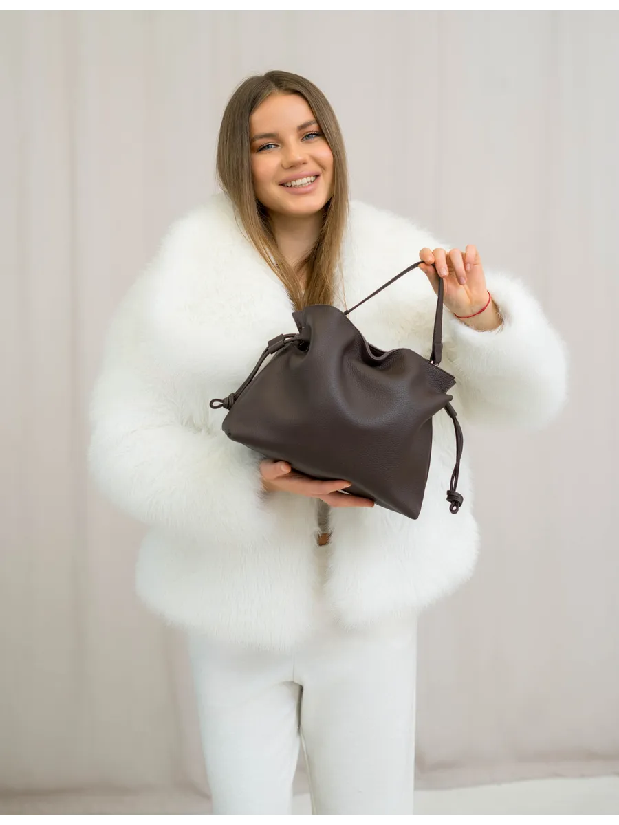 Женская сумка мешок через плечо из натуральной кожи – элегантный и практичный аксессуар, которые ценят качество и стиль. Средний размер делает её удобной в повседневной жизни: в неё легко помещаются документы, телефон, косметика и другие необходимые вещи.