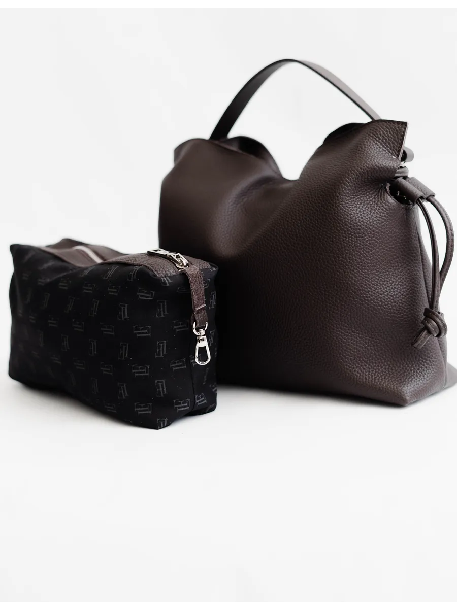 Форма мешочка придаёт модели мягкость и женственность, а чёрный цвет делает её универсальной – аксессуар гармонично вписывается в деловой, повседневный и даже вечерний гардероб.