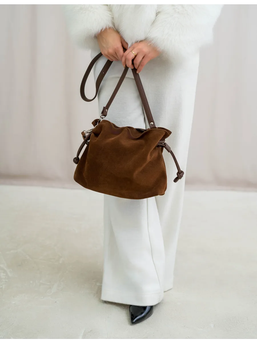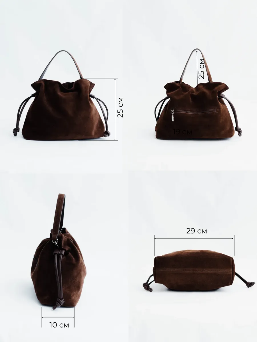 Женская сумка мешок через плечо из замши – элегантный и практичный аксессуар, которые ценят качество и стиль. Средний размер делает её удобной в повседневной жизни: в неё легко помещаются документы, телефон, косметика и другие необходимые вещи.