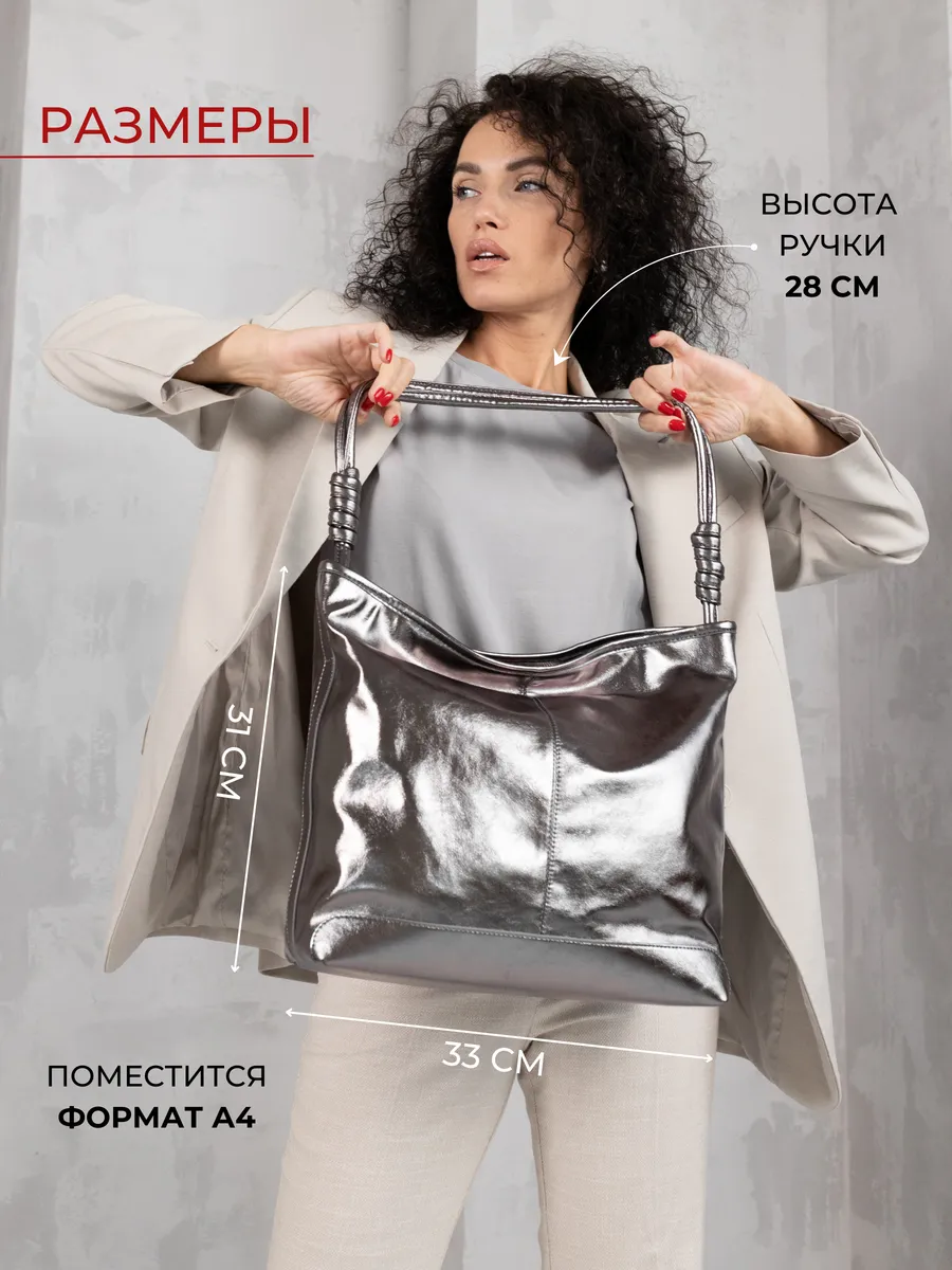 Стильный и вместительный шоппер – отличный выбор в качестве базовой сумки на каждый день! Модель от бренда «Gera Bags» отличается актуальным дизайном и высоким качеством пошива. Она универсальна и дополнит разные образы. Модный аксессуар сшит из мягкой и плотной искусственной экокожи. Изнутри он отделан прочной текстильной подкладкой. Сумочка имеет большое внутреннее отделение, разделенное карманом – перегородкой на застежке. Внутри также предусмотрен дополнительный кармашек для мобильного телефона, ключей или других мелочей. На задней стенке есть внешний карман на молнии 21х16,5 см. Крутой шоппер размером 31х32х12,5 см вмещает книги и бумаги формата А4. В него можно положить ноутбук и планшет, учебники с тетрадями или тренировочную форму. С таким аксессуаром удобно ходить на фитнес или за покупками. Это красивая дамская сумка, которая дополнит базовые повседневные, спортивные или молодежные образы. Универсальная модель понравится взрослым женщинам и молодым девушкам. Она впишется в трендовые стили кэжуал и у2, поэтому подойдет девочкам – подросткам. Изделие из качественных материалов (кожзам) и фурнитуры можно взять с собой на прогулку. Это хороший выбор для шопига, туристических путешествий или деловых поездок. Объемная сумка - мешок станет частью сдержанных образов для походов в офис или университет. С ней можно ходить на занятия в колледж или в школу. Интересная модель с внутренними и внешними кармашками вместит много вещей и покупок. Это базовый предмет женского гардероба, подходящий для ежедневных походов на работу и городских прогулок. У бренда вы найдете шопперы светлых и темных цветов. Вы можете выбрать аксессуар необычного серебристого оттенка с ярким металлическим блеском. В нашей коллекции есть классические черные и универсальные темно – коричневые сумки. А также стильный бежевый шоппер. Изделия можно приобрести для себя или в качестве приятного подарка для мамы и дочки. У нас есть акции и распродажи, вы можете купить наши товары в подарок со скидкой!