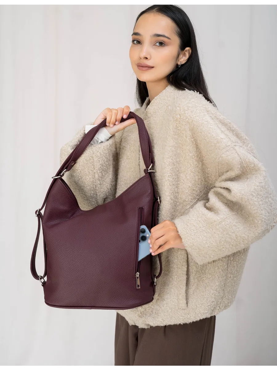 Представляем вам универсальную и стильную женскую сумку-рюкзак через плечо - среднюю классического дизайна. Эта стильная вещь станет незаменимым аксессуаром для девушек и женщин в любой ситуации - от повседневных дел до деловых встреч и путешествий. Цвет декоративной вертикальной вставки может отличаться от фото представленных на сайте. Сумка большая выполнена из искусственной кожи премиум качества, что обеспечивает не только эффектный внешний вид, но и высокую износостойкость и не уступает сумкам из натуральной кожи. Вместительный шоппер мешок, закрывающийся на молнию, позволяет удобно упаковать все необходимые вещи - от книг и тетрадей до тренировочной формы. Тоут средняя с двумя ручками для женщин и подсростков подойдет на каждый день, на прогулку, учебу в колледж школу университет, в офис или на работу. Яркий дизайн делает эту сумку идеальной для прогулок и учебы, а классический стиль будет уместен в офисе и на деловых встречах. Сумочка дамская через плечо также укомплектована отделениями для телефона и других мелочей, что позволяет легко и быстро найти нужный предмет. Шоппер кожаный достаточно вместительный. Эта универсальная вещь подходит как для подростков, так и для девушек, которые ценят стиль и комфорт. Модель имеет размеры ширина по верху 35см , ширина по дну 28 см, высота 30см глубина по дну 14см. Внутри одно отделение на молнии, на задней стенке карман на молнии, 3 кармана для мелочей, 2 на молнии, один карман открытого типа. Сумку трансформер можно носить в руках, повесить на плечо или носить как школьный рюкзак. Внутри хобо плотная подкладка, карман на молнии для мобильного телефона и карман открытого типа. Не упустите возможность приобрести эту многофункциональную и стильную не очень большую сумку через плечо от Gera! Прекрасный подарок на 14 февраля и 8 марта для любимой мамы или девушки! Женские сумки от бренда Gera - это качество российского производителя по доступной цене!