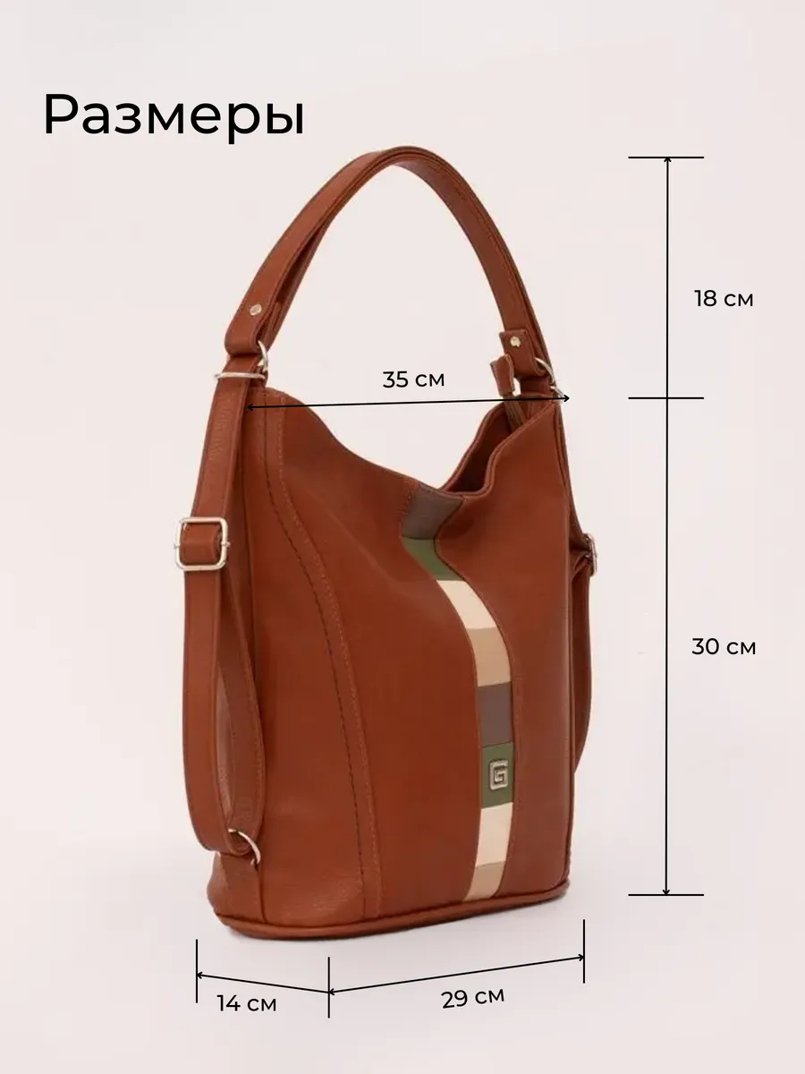 Представляем вам универсальную и стильную женскую сумку-рюкзак через плечо - среднюю классического дизайна. Эта стильная вещь станет незаменимым аксессуаром для девушек и женщин в любой ситуации - от повседневных дел до деловых встреч и путешествий. Цвет декоративной вертикальной вставки может отличаться от фото представленных на сайте. Сумка большая выполнена из искусственной кожи премиум качества, что обеспечивает не только эффектный внешний вид, но и высокую износостойкость и не уступает сумкам из натуральной кожи. Вместительный шоппер мешок, закрывающийся на молнию, позволяет удобно упаковать все необходимые вещи - от книг и тетрадей до тренировочной формы. Тоут средняя с двумя ручками для женщин и подсростков подойдет на каждый день, на прогулку, учебу в колледж школу университет, в офис или на работу. Яркий дизайн делает эту сумку идеальной для прогулок и учебы, а классический стиль будет уместен в офисе и на деловых встречах. Сумочка дамская через плечо также укомплектована отделениями для телефона и других мелочей, что позволяет легко и быстро найти нужный предмет. Шоппер кожаный достаточно вместительный. Эта универсальная вещь подходит как для подростков, так и для девушек, которые ценят стиль и комфорт. Модель имеет размеры ширина по верху 35см , ширина по дну 28 см, высота 30см глубина по дну 14см. Внутри одно отделение на молнии, на задней стенке карман на молнии, 3 кармана для мелочей, 2 на молнии, один карман открытого типа. Сумку трансформер можно носить в руках, повесить на плечо или носить как школьный рюкзак. Внутри хобо плотная подкладка, карман на молнии для мобильного телефона и карман открытого типа. Не упустите возможность приобрести эту многофункциональную и стильную не очень большую сумку через плечо от Gera! Прекрасный подарок на 14 февраля и 8 марта для любимой мамы или девушки! Женские сумки от бренда Gera - это качество российского производителя по доступной цене!