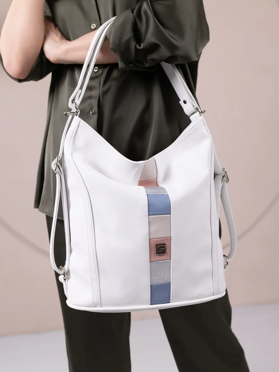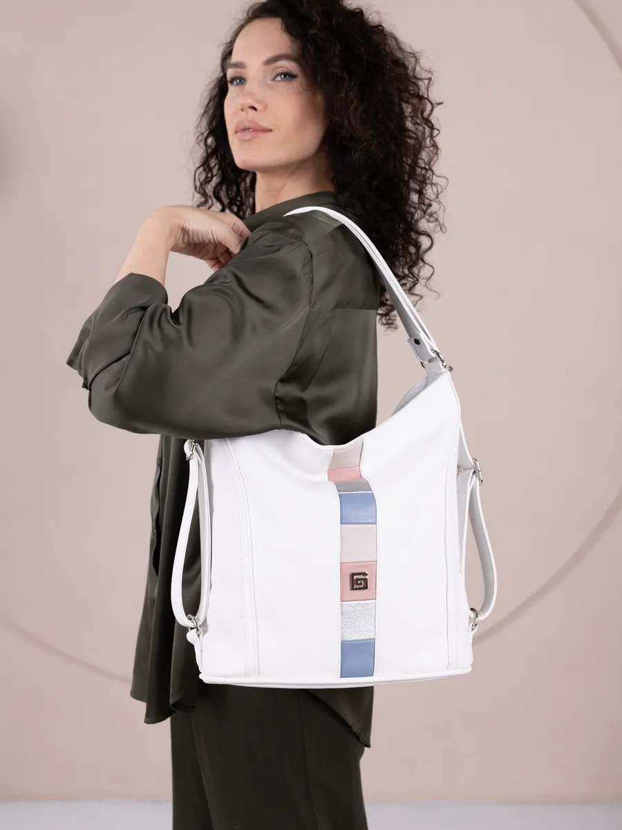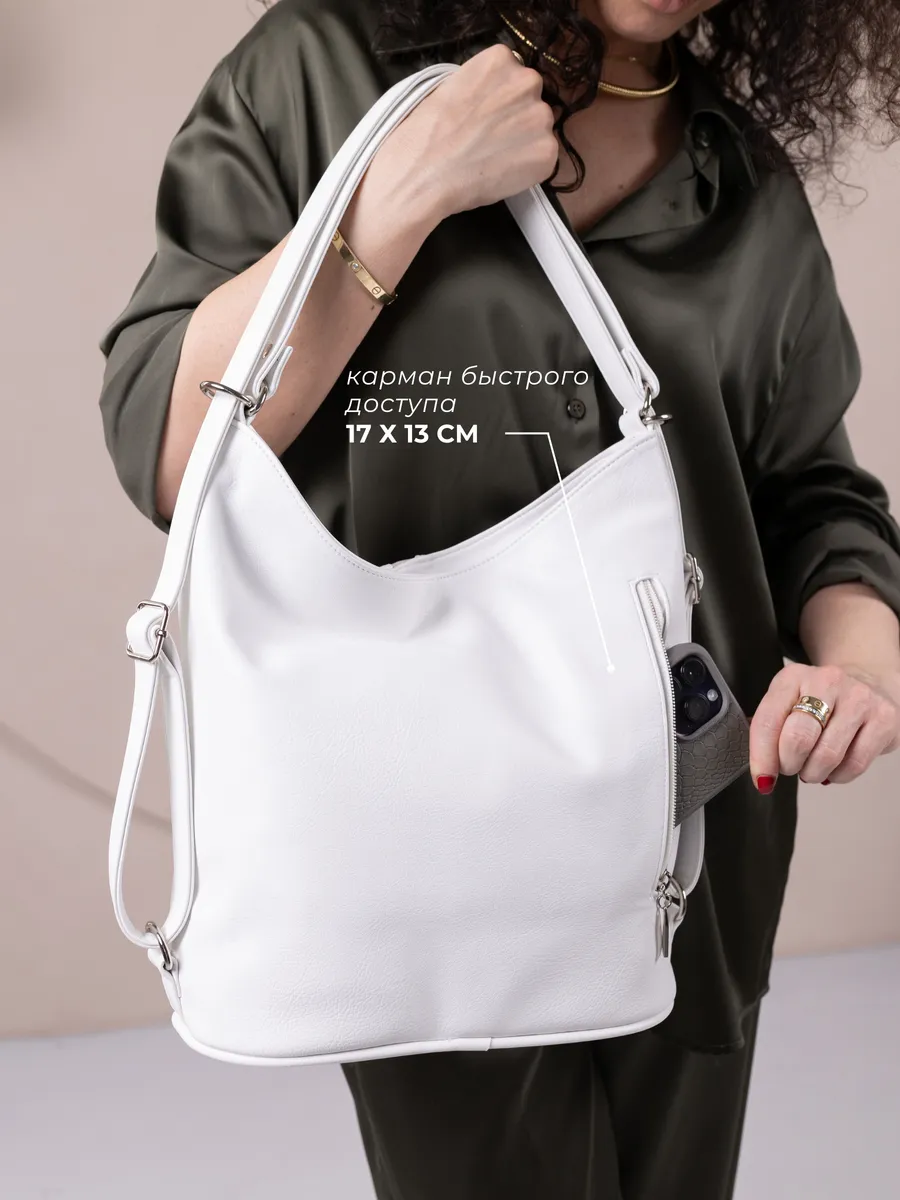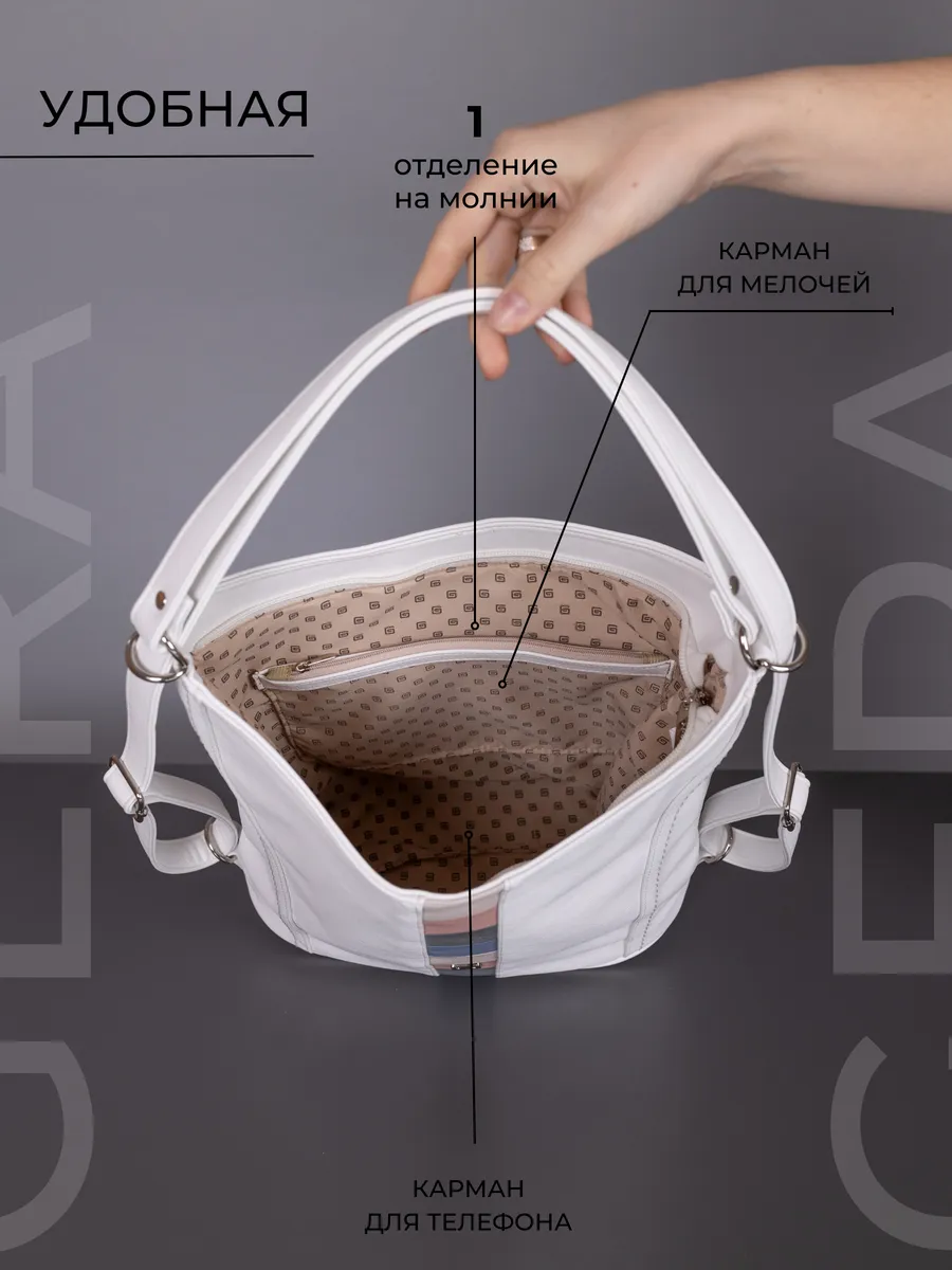 Представляем вам универсальную и стильную женскую сумку-рюкзак через плечо - среднюю классического дизайна. Эта стильная вещь станет незаменимым аксессуаром для девушек и женщин в любой ситуации - от повседневных дел до деловых встреч и путешествий. Цвет декоративной вертикальной вставки может отличаться от фото представленных на сайте. Сумка большая выполнена из искусственной кожи премиум качества, что обеспечивает не только эффектный внешний вид, но и высокую износостойкость и не уступает сумкам из натуральной кожи. Вместительный шоппер мешок, закрывающийся на молнию, позволяет удобно упаковать все необходимые вещи - от книг и тетрадей до тренировочной формы. Тоут средняя с двумя ручками для женщин и подсростков подойдет на каждый день, на прогулку, учебу в колледж школу университет, в офис или на работу. Яркий дизайн делает эту сумку идеальной для прогулок и учебы, а классический стиль будет уместен в офисе и на деловых встречах. Сумочка дамская через плечо также укомплектована отделениями для телефона и других мелочей, что позволяет легко и быстро найти нужный предмет. Шоппер кожаный достаточно вместительный. Эта универсальная вещь подходит как для подростков, так и для девушек, которые ценят стиль и комфорт. Модель имеет размеры ширина по верху 35см , ширина по дну 28 см, высота 30см глубина по дну 14см. Внутри одно отделение на молнии, на задней стенке карман на молнии, 3 кармана для мелочей, 2 на молнии, один карман открытого типа. Сумку трансформер можно носить в руках, повесить на плечо или носить как школьный рюкзак. Внутри хобо плотная подкладка, карман на молнии для мобильного телефона и карман открытого типа. Не упустите возможность приобрести эту многофункциональную и стильную не очень большую сумку через плечо от Gera! Прекрасный подарок на 14 февраля и 8 марта для любимой мамы или девушки! Женские сумки от бренда Gera - это качество российского производителя по доступной цене!