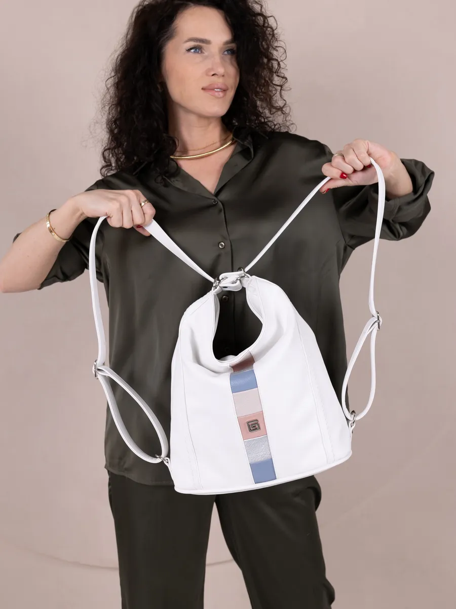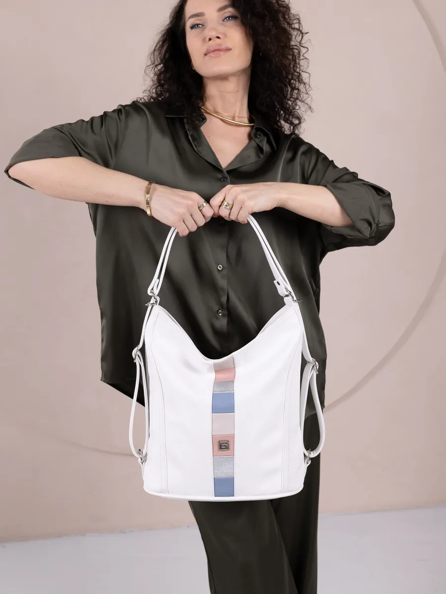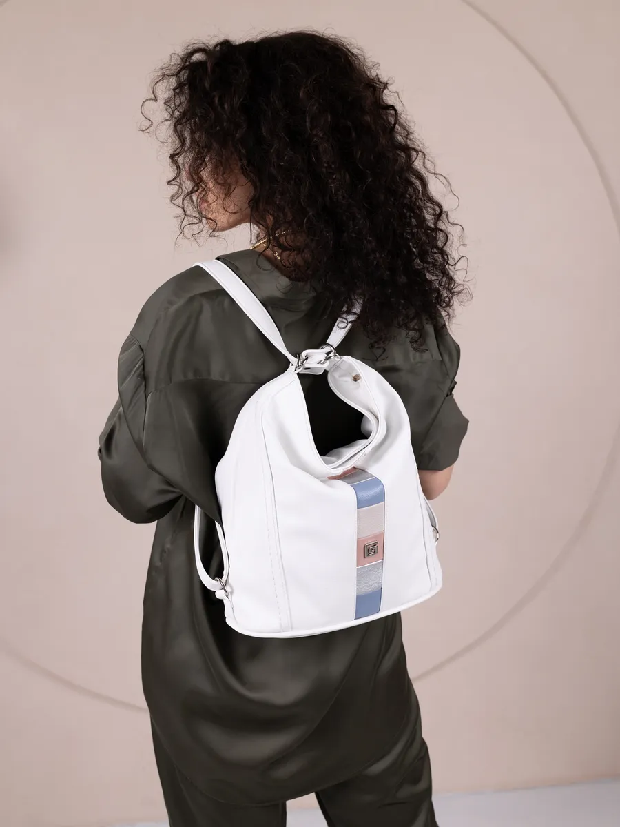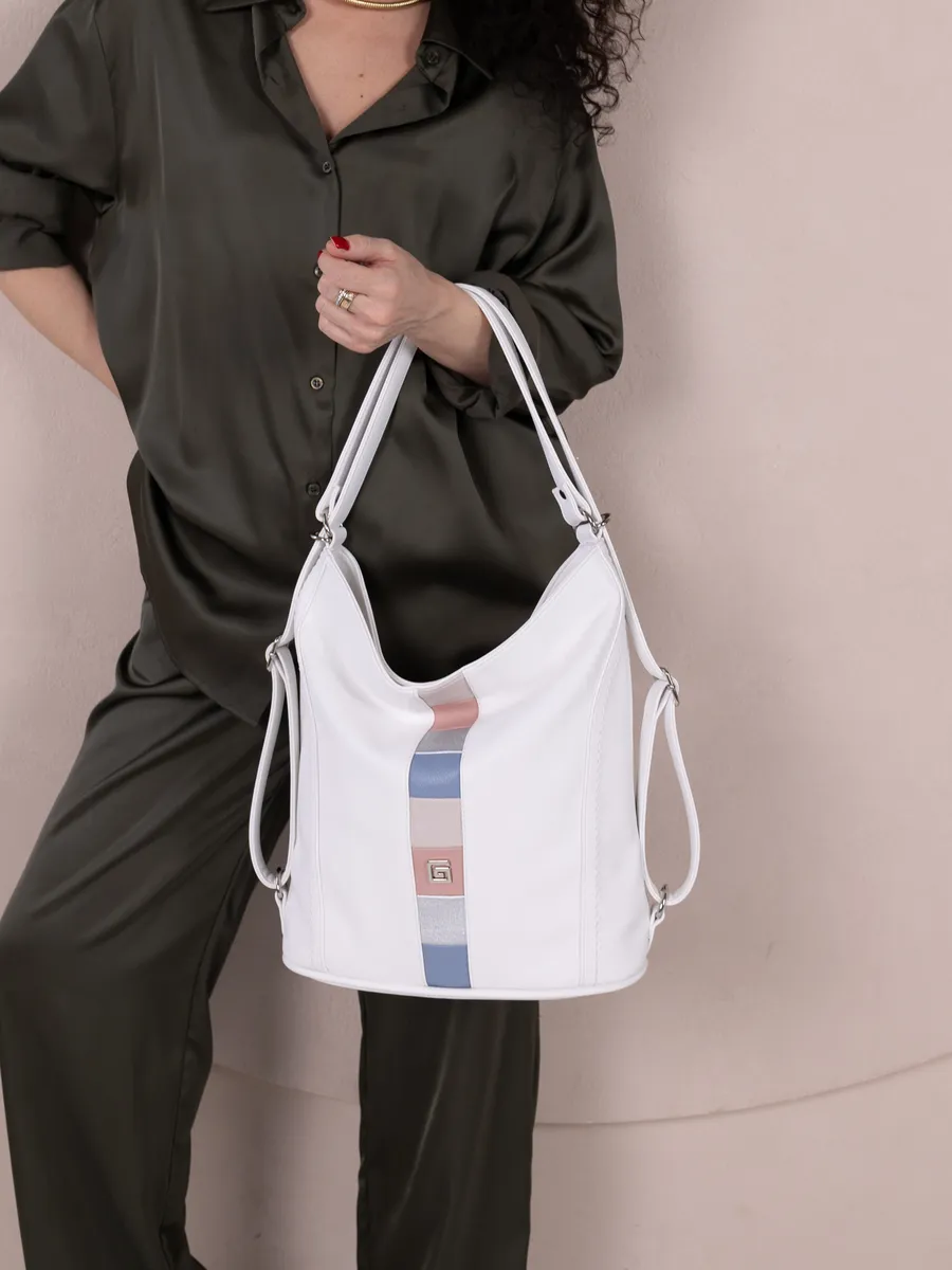 Представляем вам универсальную и стильную женскую сумку-рюкзак через плечо - среднюю классического дизайна. Эта стильная вещь станет незаменимым аксессуаром для девушек и женщин в любой ситуации - от повседневных дел до деловых встреч и путешествий. Цвет декоративной вертикальной вставки может отличаться от фото представленных на сайте. Сумка большая выполнена из искусственной кожи премиум качества, что обеспечивает не только эффектный внешний вид, но и высокую износостойкость и не уступает сумкам из натуральной кожи. Вместительный шоппер мешок, закрывающийся на молнию, позволяет удобно упаковать все необходимые вещи - от книг и тетрадей до тренировочной формы. Тоут средняя с двумя ручками для женщин и подсростков подойдет на каждый день, на прогулку, учебу в колледж школу университет, в офис или на работу. Яркий дизайн делает эту сумку идеальной для прогулок и учебы, а классический стиль будет уместен в офисе и на деловых встречах. Сумочка дамская через плечо также укомплектована отделениями для телефона и других мелочей, что позволяет легко и быстро найти нужный предмет. Шоппер кожаный достаточно вместительный. Эта универсальная вещь подходит как для подростков, так и для девушек, которые ценят стиль и комфорт. Модель имеет размеры ширина по верху 35см , ширина по дну 28 см, высота 30см глубина по дну 14см. Внутри одно отделение на молнии, на задней стенке карман на молнии, 3 кармана для мелочей, 2 на молнии, один карман открытого типа. Сумку трансформер можно носить в руках, повесить на плечо или носить как школьный рюкзак. Внутри хобо плотная подкладка, карман на молнии для мобильного телефона и карман открытого типа. Не упустите возможность приобрести эту многофункциональную и стильную не очень большую сумку через плечо от Gera! Прекрасный подарок на 14 февраля и 8 марта для любимой мамы или девушки! Женские сумки от бренда Gera - это качество российского производителя по доступной цене!
