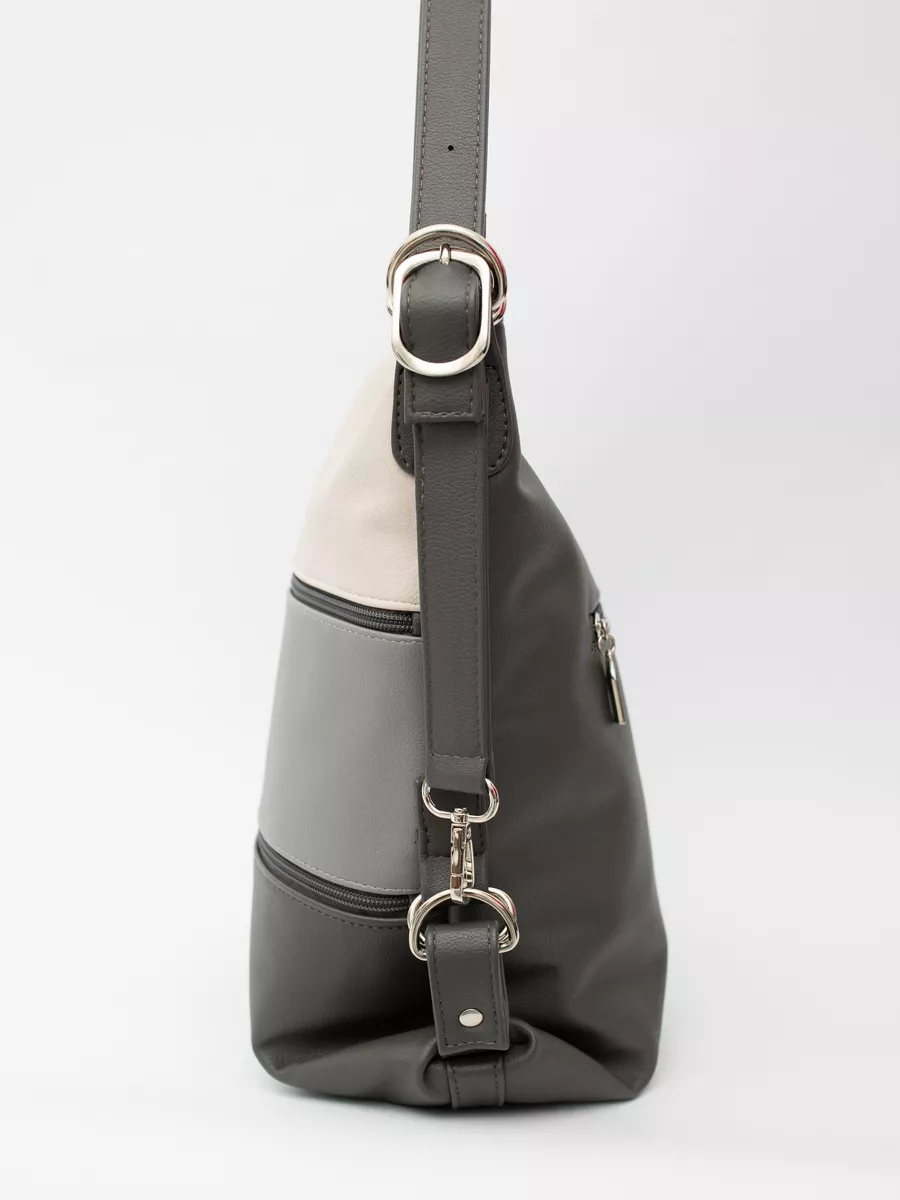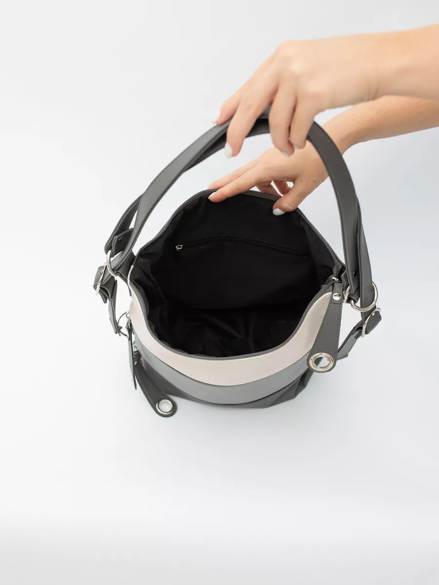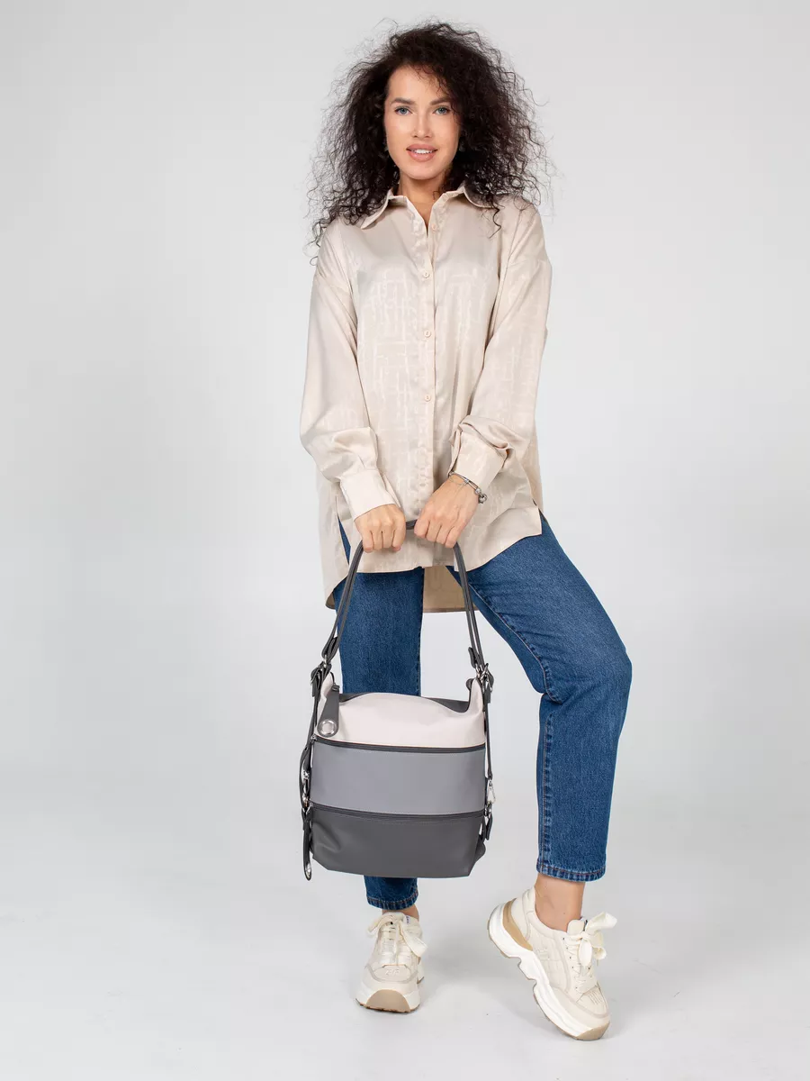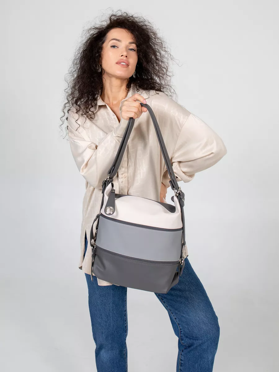 Представляем вам универсальную и стильную женскую сумку-рюкзак через плечо - среднюю классического дизайна. Эта вещь станет незаменимым аксессуаром для девушек и женщин в любой ситуации - от повседневных дел до деловых встреч и путешествий. Сумка большая выполнена из искусственной кожи премиум качества, что обеспечивает не только эффектный внешний вид, но и высокую износостойкость и не уступает сумкам из натуральной кожи. Вместительный шоппер мешок, закрывающийся на молнию, позволяет удобно упаковать все необходимые вещи - от книг и тетрадей до тренировочной формы. Тоут средняя с двумя ручками для женщин и подсростков подойдет на каждый день, на прогулку, учебу в колледж школу университет, в офис или на работу. Яркий дизайн делает эту сумку идеальной для прогулок и учебы, а классический стиль будет уместен в офисе и на деловых встречах. Сумочка дамская через плечо также укомплектована отделениями для телефона и других мелочей, что позволяет легко и быстро найти нужный предмет. Шоппер кожаный достаточно вместительный. Эта универсальная вещь подходит как для подростков, так и для девушек, которые ценят стиль и комфорт. Модель имеет размеры 34х34х12 см. Внутри сумки хобо одно отделение на молнии. На задней стенке карман на молнии, 3 кармана для мелочей, 2 на молнии, 2 без молнии. Брендовую сумку трансформер можно носить в руках, повесить на плечо или носить как школьный рюкзак. Внутри хобо плотная подкладка, карман на молнии для мобильного телефона и карман открытого типа. Не упустите возможность приобрести эту многофункциональную и стильную не очень большую сумку через плечо от Gera! Прекрасный подарок на 14 февраля и 8 марта для любимой мамы или девушки! Женские сумки от бренда Gera - это качество российского производителя по доступной цене!