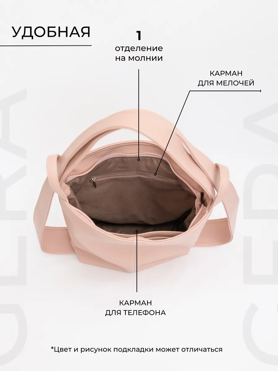 Представляем вам универсальную и стильную женскую сумку-рюкзак через плечо - среднюю классического дизайна. Эта вещь станет незаменимым аксессуаром для девушек и женщин в любой ситуации - от повседневных дел до деловых встреч и путешествий. Сумка большая выполнена из искусственной кожи премиум качества, что обеспечивает не только эффектный внешний вид, но и высокую износостойкость и не уступает сумкам из натуральной кожи. Вместительный шоппер мешок, закрывающийся на молнию, позволяет удобно упаковать все необходимые вещи - от книг и тетрадей до тренировочной формы. Тоут средняя с двумя ручками для женщин и подсростков подойдет на каждый день, на прогулку, учебу в колледж школу университет, в офис или на работу. Яркий дизайн делает эту сумку идеальной для прогулок и учебы, а классический стиль будет уместен в офисе и на деловых встречах. Сумочка дамская через плечо также укомплектована отделениями для телефона и других мелочей, что позволяет легко и быстро найти нужный предмет. Шоппер кожаный достаточно вместительный. Эта универсальная вещь подходит как для подростков, так и для девушек, которые ценят стиль и комфорт. Модель имеет размеры 26х34х11 см. Внутри сумки хобо одно отделение на молнии. На задней стенке карман на молнии, 3 кармана для мелочей, 2 на молнии, 2 без молнии. Сумку трансформер можно носить в руках, повесить на плечо или носить как школьный рюкзак. Внутри хобо плотная подкладка, карман на молнии для мобильного телефона и карман открытого типа. Не упустите возможность приобрести эту многофункциональную и стильную не очень большую сумку через плечо от Gera! Прекрасный подарок на 14 февраля и 8 марта для любимой мамы или девушки! Женские сумки от бренда Gera - это качество российского производителя по доступной цене!
