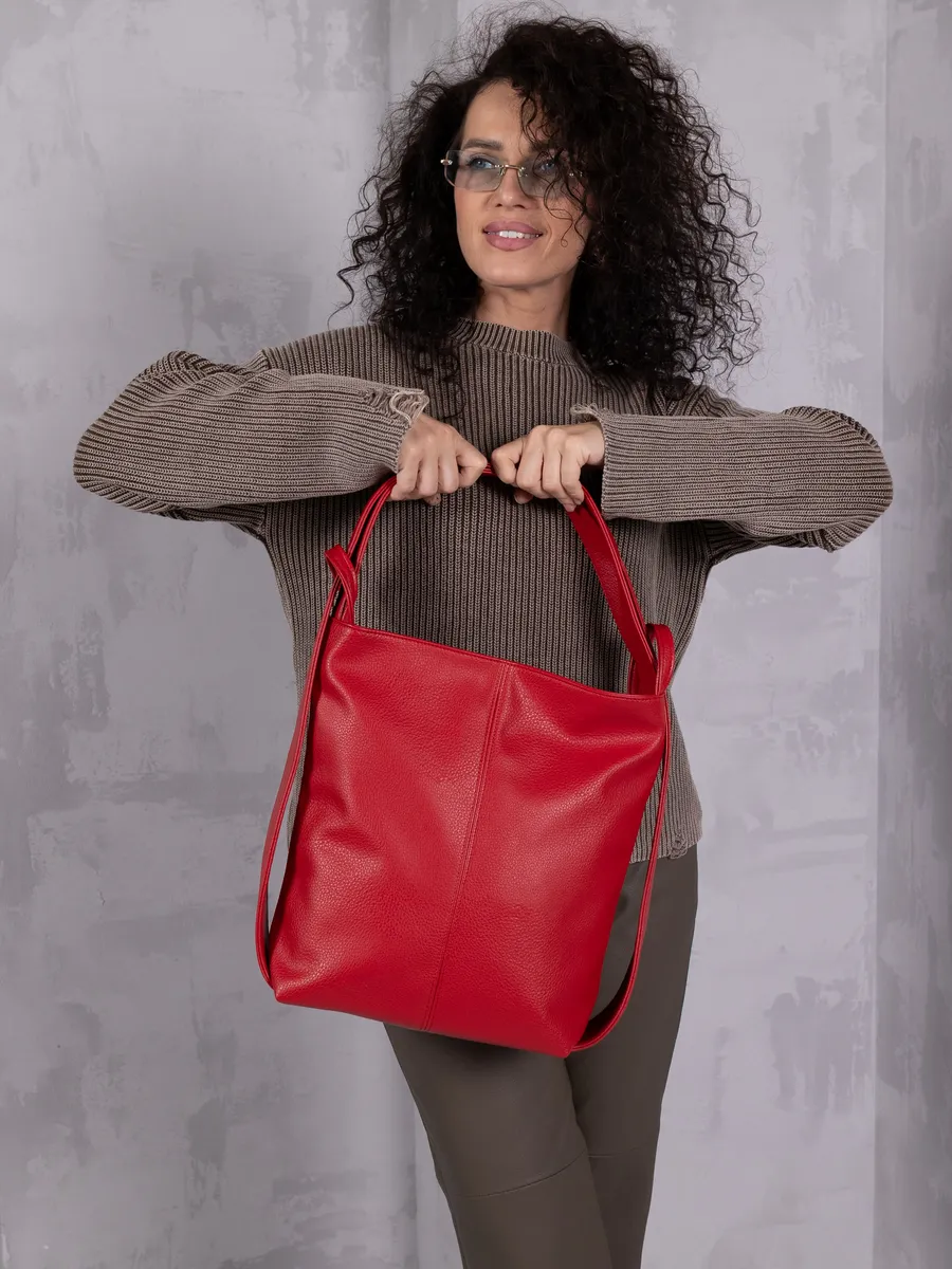 Представляем вам универсальную и стильную женскую сумку-рюкзак через плечо - среднюю классического дизайна. Эта вещь станет незаменимым аксессуаром для девушек и женщин в любой ситуации - от повседневных дел до деловых встреч и путешествий. Сумка большая выполнена из искусственной кожи премиум качества, что обеспечивает не только эффектный внешний вид, но и высокую износостойкость и не уступает сумкам из натуральной кожи. Вместительный шоппер мешок, закрывающийся на молнию, позволяет удобно упаковать все необходимые вещи - от книг и тетрадей до тренировочной формы. Тоут средняя с двумя ручками для женщин и подсростков подойдет на каждый день, на прогулку, учебу в колледж школу университет, в офис или на работу. Яркий дизайн делает эту сумку идеальной для прогулок и учебы, а классический стиль будет уместен в офисе и на деловых встречах. Сумочка дамская через плечо также укомплектована отделениями для телефона и других мелочей, что позволяет легко и быстро найти нужный предмет. Шоппер кожаный достаточно вместительный. Эта универсальная вещь подходит как для подростков, так и для девушек, которые ценят стиль и комфорт. Модель имеет размеры 26х34х11 см. Внутри сумки хобо одно отделение на молнии. На задней стенке карман на молнии, 3 кармана для мелочей, 2 на молнии, 2 без молнии. Сумку трансформер можно носить в руках, повесить на плечо или носить как школьный рюкзак. Внутри хобо плотная подкладка, карман на молнии для мобильного телефона и карман открытого типа. Не упустите возможность приобрести эту многофункциональную и стильную не очень большую сумку через плечо от Gera! Прекрасный подарок на 14 февраля и 8 марта для любимой мамы или девушки! Женские сумки от бренда Gera - это качество российского производителя по доступной цене!
