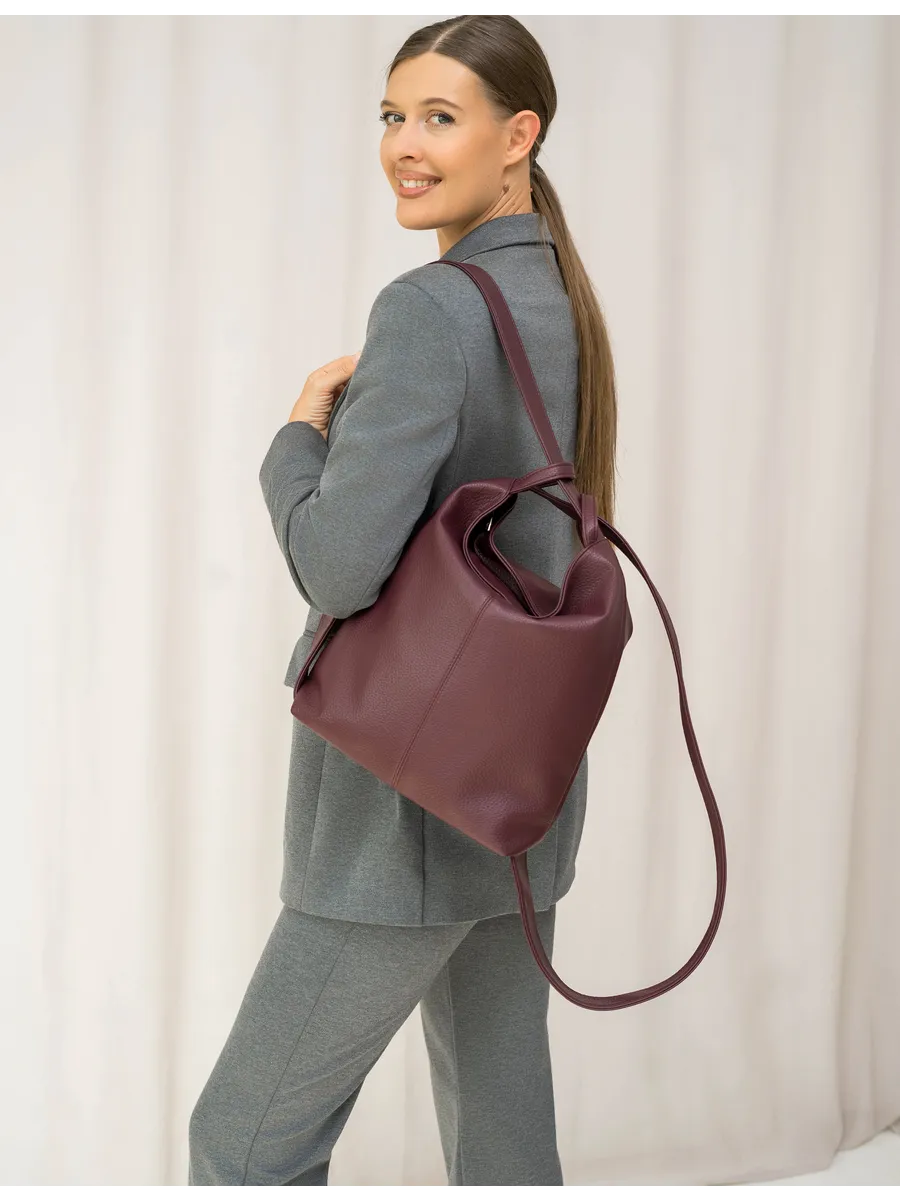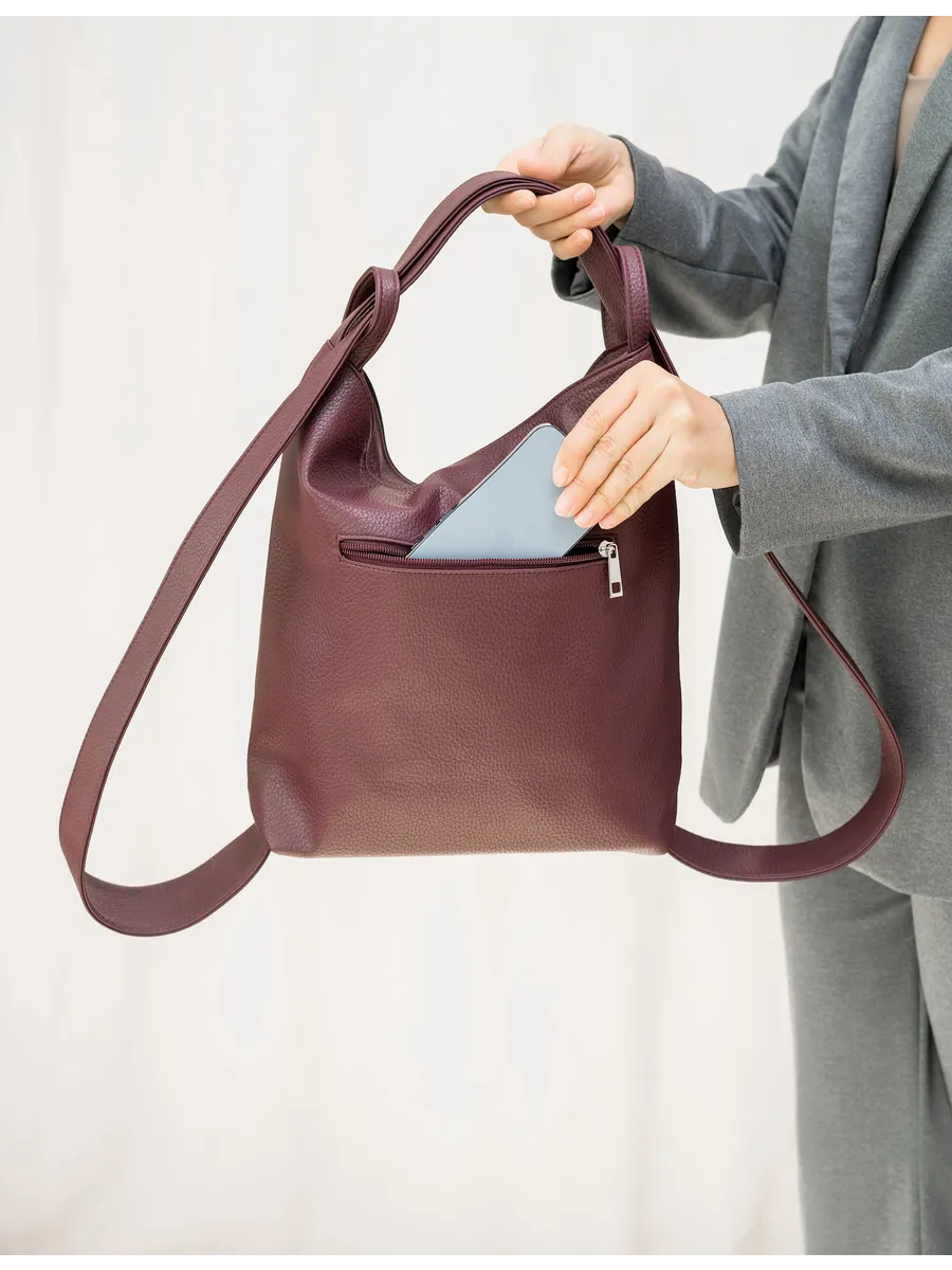 Представляем вам универсальную и стильную женскую сумку-рюкзак через плечо - среднюю классического дизайна. Эта вещь станет незаменимым аксессуаром для девушек и женщин в любой ситуации - от повседневных дел до деловых встреч и путешествий. Сумка большая выполнена из искусственной кожи премиум качества, что обеспечивает не только эффектный внешний вид, но и высокую износостойкость и не уступает сумкам из натуральной кожи. Вместительный шоппер мешок, закрывающийся на молнию, позволяет удобно упаковать все необходимые вещи - от книг и тетрадей до тренировочной формы. Тоут средняя с двумя ручками для женщин и подсростков подойдет на каждый день, на прогулку, учебу в колледж школу университет, в офис или на работу. Яркий дизайн делает эту сумку идеальной для прогулок и учебы, а классический стиль будет уместен в офисе и на деловых встречах. Сумочка дамская через плечо также укомплектована отделениями для телефона и других мелочей, что позволяет легко и быстро найти нужный предмет. Шоппер кожаный достаточно вместительный. Эта универсальная вещь подходит как для подростков, так и для девушек, которые ценят стиль и комфорт. Модель имеет размеры 26х34х11 см. Внутри сумки хобо одно отделение на молнии. На задней стенке карман на молнии, 3 кармана для мелочей, 2 на молнии, 2 без молнии. Сумку трансформер можно носить в руках, повесить на плечо или носить как школьный рюкзак. Внутри хобо плотная подкладка, карман на молнии для мобильного телефона и карман открытого типа. Не упустите возможность приобрести эту многофункциональную и стильную не очень большую сумку через плечо от Gera! Прекрасный подарок на 14 февраля и 8 марта для любимой мамы или девушки! Женские сумки от бренда Gera - это качество российского производителя по доступной цене!