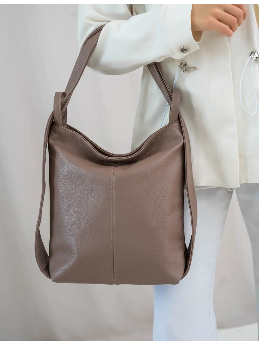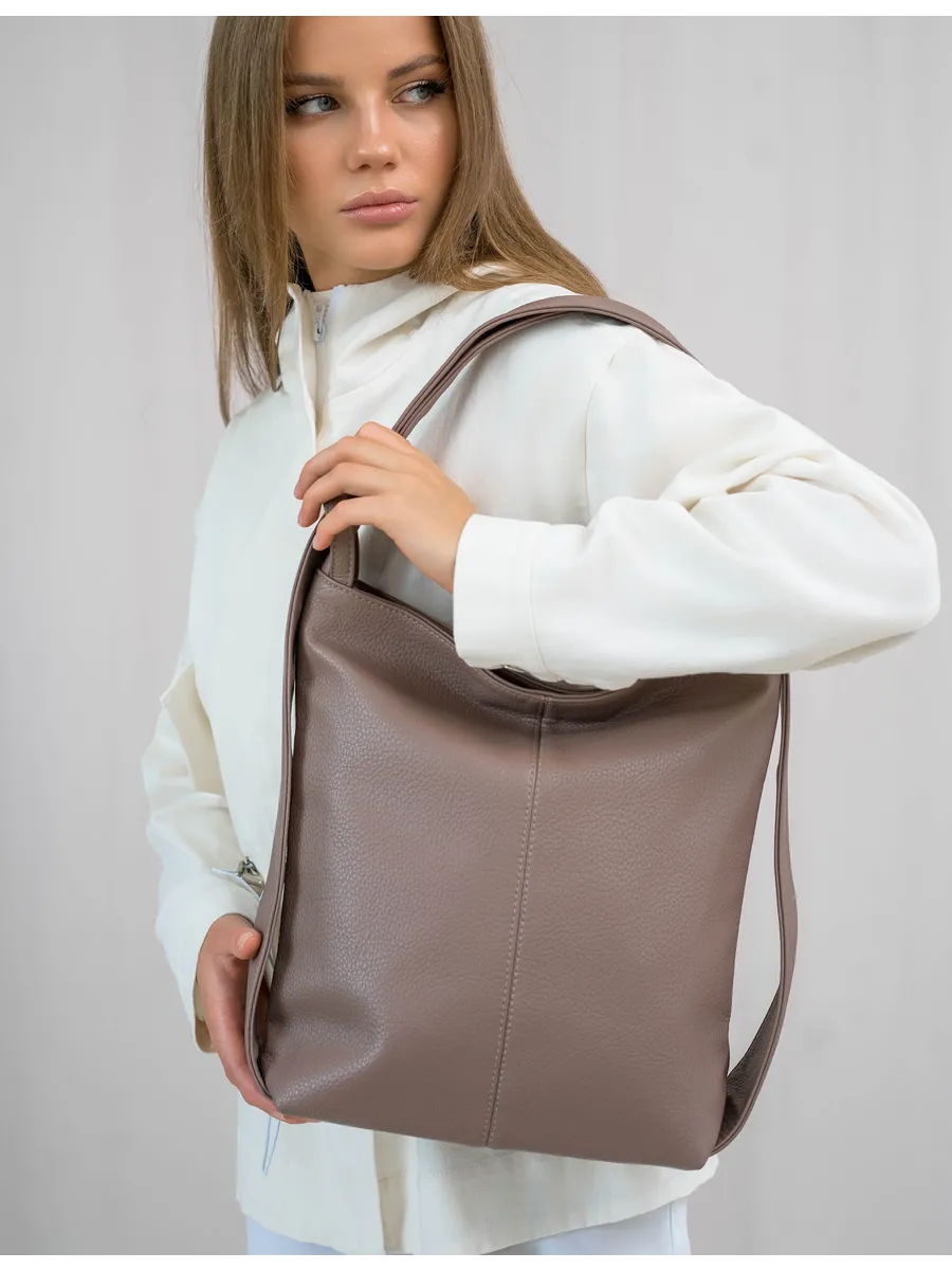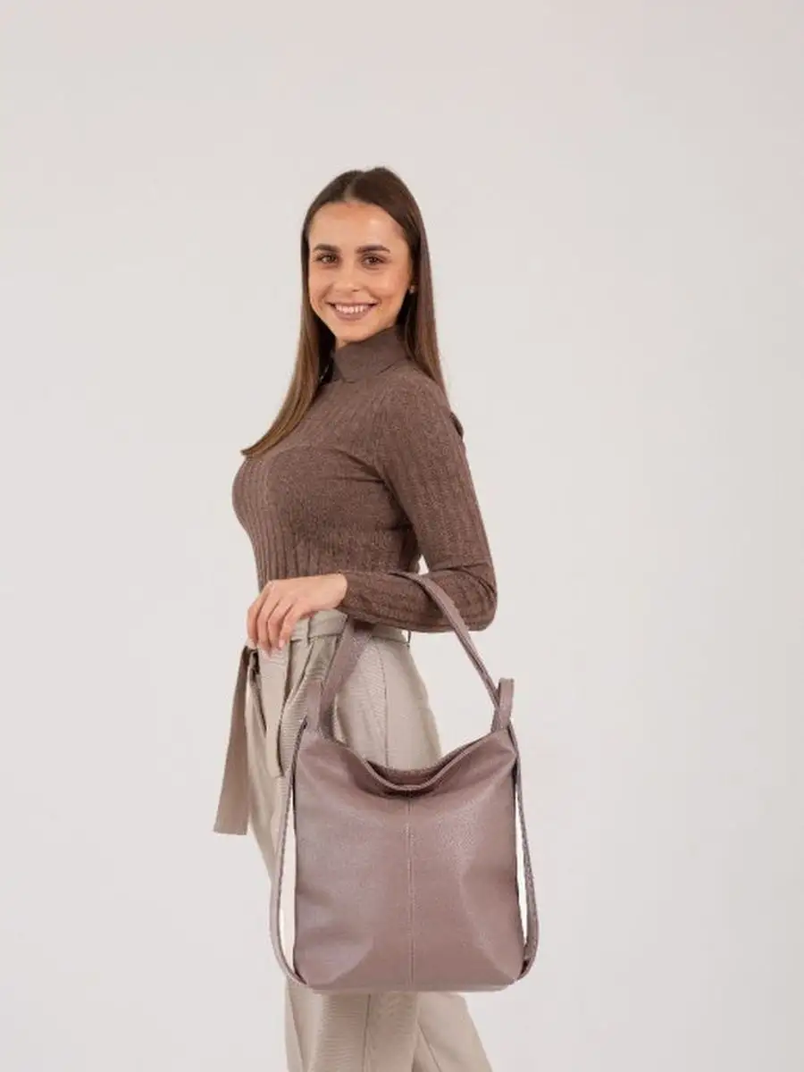 Представляем вам универсальную и стильную женскую сумку-рюкзак через плечо - среднюю классического дизайна. Эта вещь станет незаменимым аксессуаром для девушек и женщин в любой ситуации - от повседневных дел до деловых встреч и путешествий. Сумка большая выполнена из искусственной кожи премиум качества, что обеспечивает не только эффектный внешний вид, но и высокую износостойкость и не уступает сумкам из натуральной кожи. Вместительный шоппер мешок, закрывающийся на молнию, позволяет удобно упаковать все необходимые вещи - от книг и тетрадей до тренировочной формы. Тоут средняя с двумя ручками для женщин и подсростков подойдет на каждый день, на прогулку, учебу в колледж школу университет, в офис или на работу. Яркий дизайн делает эту сумку идеальной для прогулок и учебы, а классический стиль будет уместен в офисе и на деловых встречах. Сумочка дамская через плечо также укомплектована отделениями для телефона и других мелочей, что позволяет легко и быстро найти нужный предмет. Шоппер кожаный достаточно вместительный. Эта универсальная вещь подходит как для подростков, так и для девушек, которые ценят стиль и комфорт. Модель имеет размеры 26х34х11 см. Внутри сумки хобо одно отделение на молнии. На задней стенке карман на молнии, 3 кармана для мелочей, 2 на молнии, 2 без молнии. Сумку трансформер можно носить в руках, повесить на плечо или носить как школьный рюкзак. Внутри хобо плотная подкладка, карман на молнии для мобильного телефона и карман открытого типа. Не упустите возможность приобрести эту многофункциональную и стильную не очень большую сумку через плечо от Gera! Прекрасный подарок на 14 февраля и 8 марта для любимой мамы или девушки! Женские сумки от бренда Gera - это качество российского производителя по доступной цене!