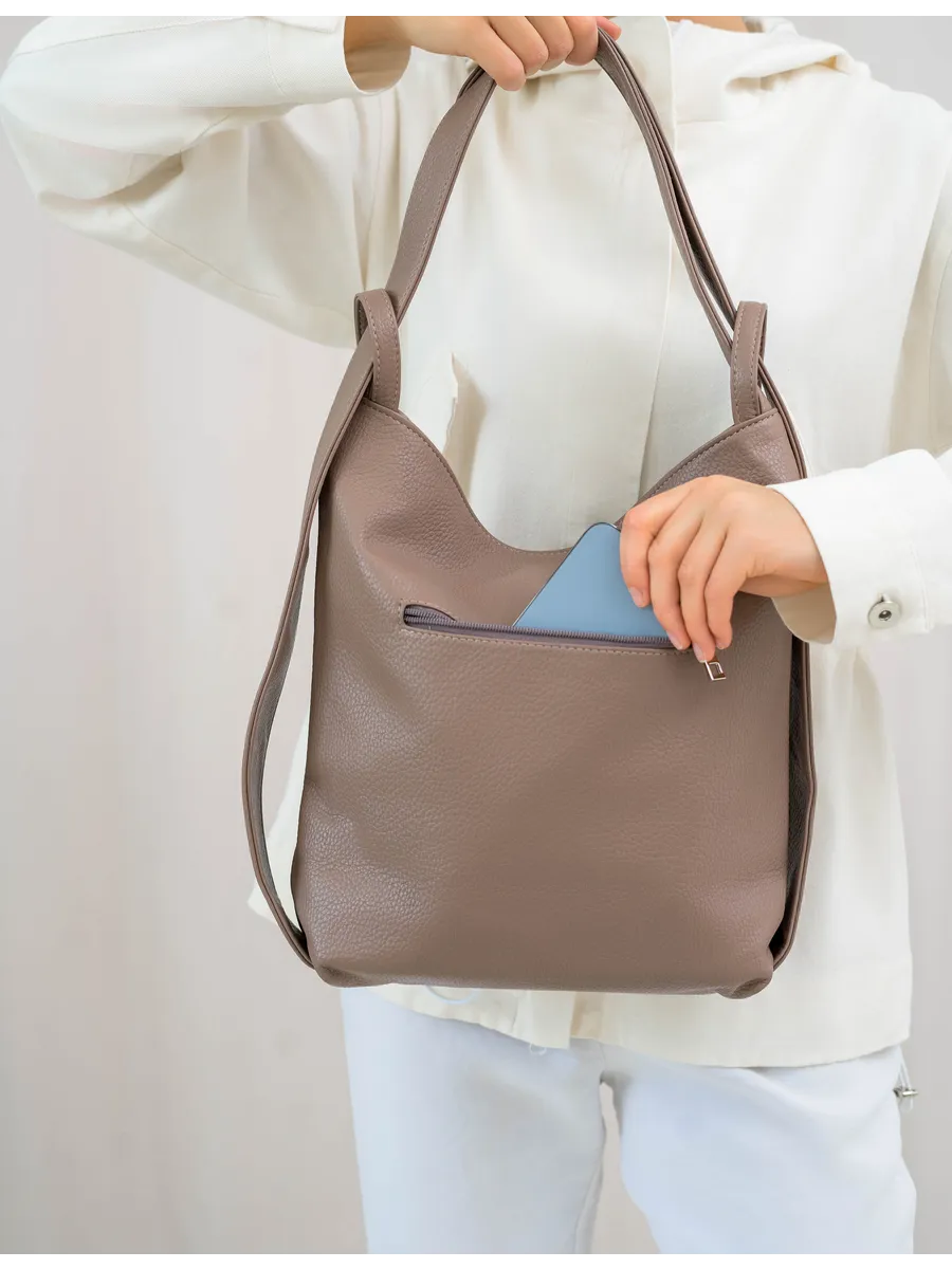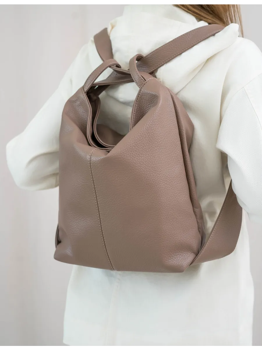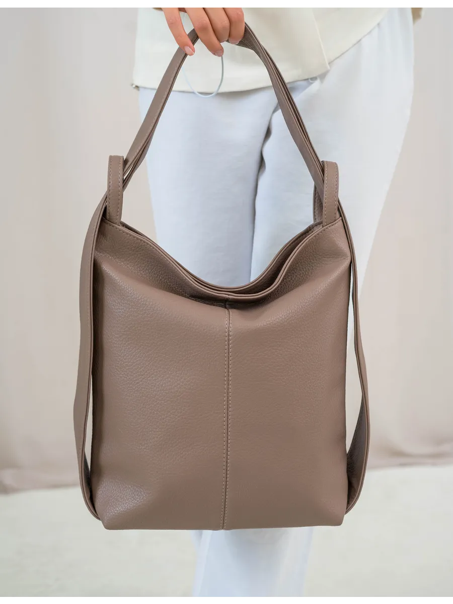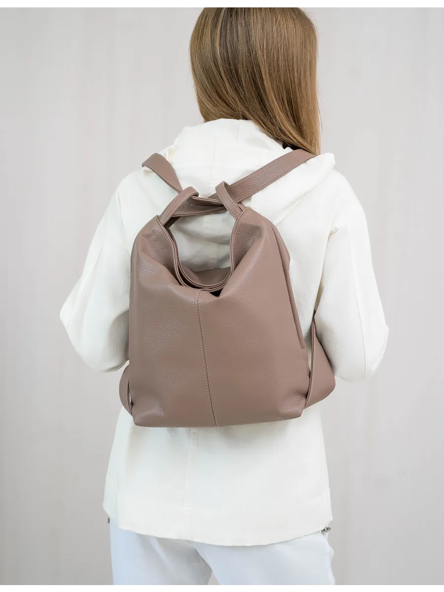 Представляем вам универсальную и стильную женскую сумку-рюкзак через плечо - среднюю классического дизайна. Эта вещь станет незаменимым аксессуаром для девушек и женщин в любой ситуации - от повседневных дел до деловых встреч и путешествий. Сумка большая выполнена из искусственной кожи премиум качества, что обеспечивает не только эффектный внешний вид, но и высокую износостойкость и не уступает сумкам из натуральной кожи. Вместительный шоппер мешок, закрывающийся на молнию, позволяет удобно упаковать все необходимые вещи - от книг и тетрадей до тренировочной формы. Тоут средняя с двумя ручками для женщин и подсростков подойдет на каждый день, на прогулку, учебу в колледж школу университет, в офис или на работу. Яркий дизайн делает эту сумку идеальной для прогулок и учебы, а классический стиль будет уместен в офисе и на деловых встречах. Сумочка дамская через плечо также укомплектована отделениями для телефона и других мелочей, что позволяет легко и быстро найти нужный предмет. Шоппер кожаный достаточно вместительный. Эта универсальная вещь подходит как для подростков, так и для девушек, которые ценят стиль и комфорт. Модель имеет размеры 26х34х11 см. Внутри сумки хобо одно отделение на молнии. На задней стенке карман на молнии, 3 кармана для мелочей, 2 на молнии, 2 без молнии. Сумку трансформер можно носить в руках, повесить на плечо или носить как школьный рюкзак. Внутри хобо плотная подкладка, карман на молнии для мобильного телефона и карман открытого типа. Не упустите возможность приобрести эту многофункциональную и стильную не очень большую сумку через плечо от Gera! Прекрасный подарок на 14 февраля и 8 марта для любимой мамы или девушки! Женские сумки от бренда Gera - это качество российского производителя по доступной цене!