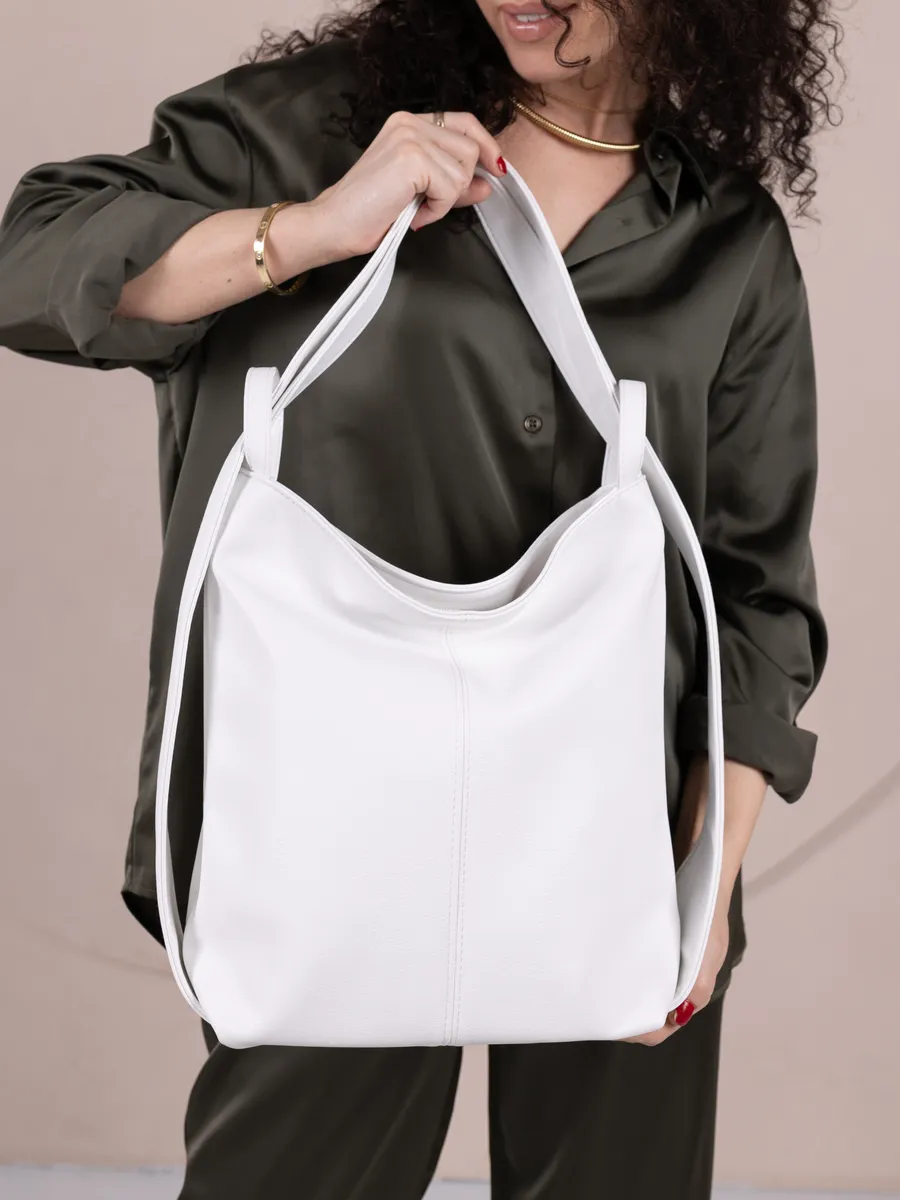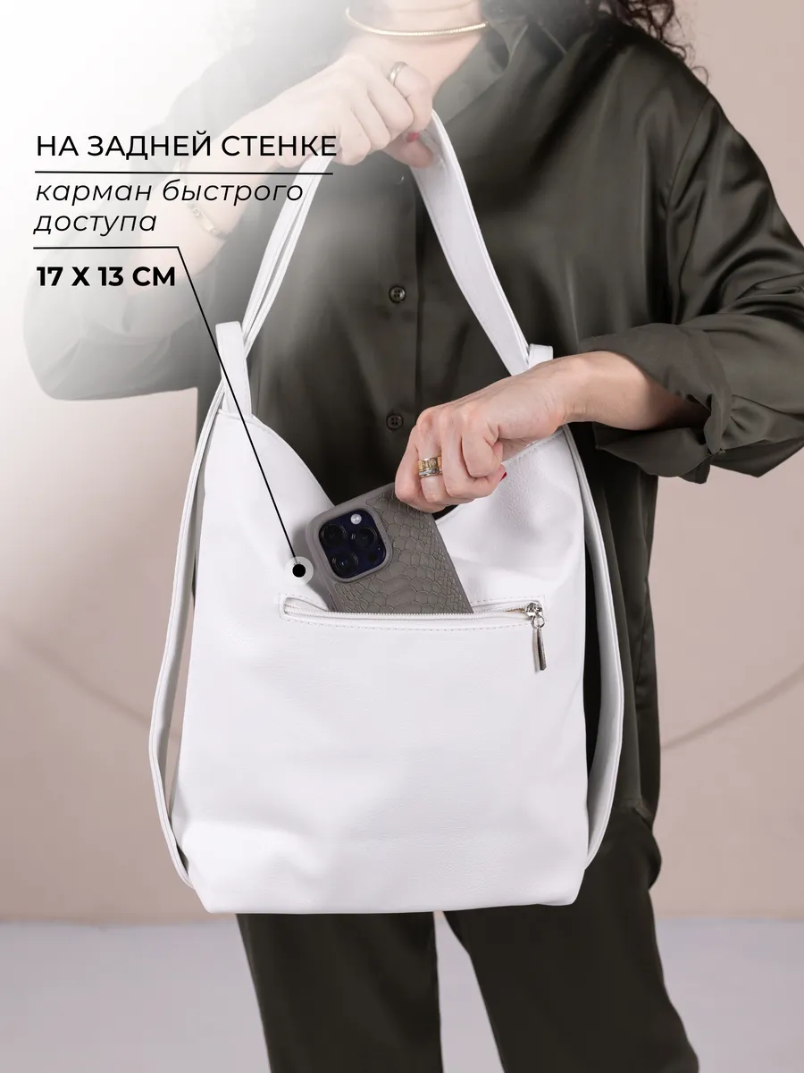Представляем вам универсальную и стильную женскую сумку-рюкзак через плечо - среднюю классического дизайна. Эта вещь станет незаменимым аксессуаром для девушек и женщин в любой ситуации - от повседневных дел до деловых встреч и путешествий. Сумка большая выполнена из искусственной кожи премиум качества, что обеспечивает не только эффектный внешний вид, но и высокую износостойкость и не уступает сумкам из натуральной кожи. Вместительный шоппер мешок, закрывающийся на молнию, позволяет удобно упаковать все необходимые вещи - от книг и тетрадей до тренировочной формы. Тоут средняя с двумя ручками для женщин и подсростков подойдет на каждый день, на прогулку, учебу в колледж школу университет, в офис или на работу. Яркий дизайн делает эту сумку идеальной для прогулок и учебы, а классический стиль будет уместен в офисе и на деловых встречах. Сумочка дамская через плечо также укомплектована отделениями для телефона и других мелочей, что позволяет легко и быстро найти нужный предмет. Шоппер кожаный достаточно вместительный. Эта универсальная вещь подходит как для подростков, так и для девушек, которые ценят стиль и комфорт. Модель имеет размеры 26х34х11 см. Внутри сумки хобо одно отделение на молнии. На задней стенке карман на молнии, 3 кармана для мелочей, 2 на молнии, 2 без молнии. Сумку трансформер можно носить в руках, повесить на плечо или носить как школьный рюкзак. Внутри хобо плотная подкладка, карман на молнии для мобильного телефона и карман открытого типа. Не упустите возможность приобрести эту многофункциональную и стильную не очень большую сумку через плечо от Gera! Прекрасный подарок на 14 февраля и 8 марта для любимой мамы или девушки! Женские сумки от бренда Gera - это качество российского производителя по доступной цене!