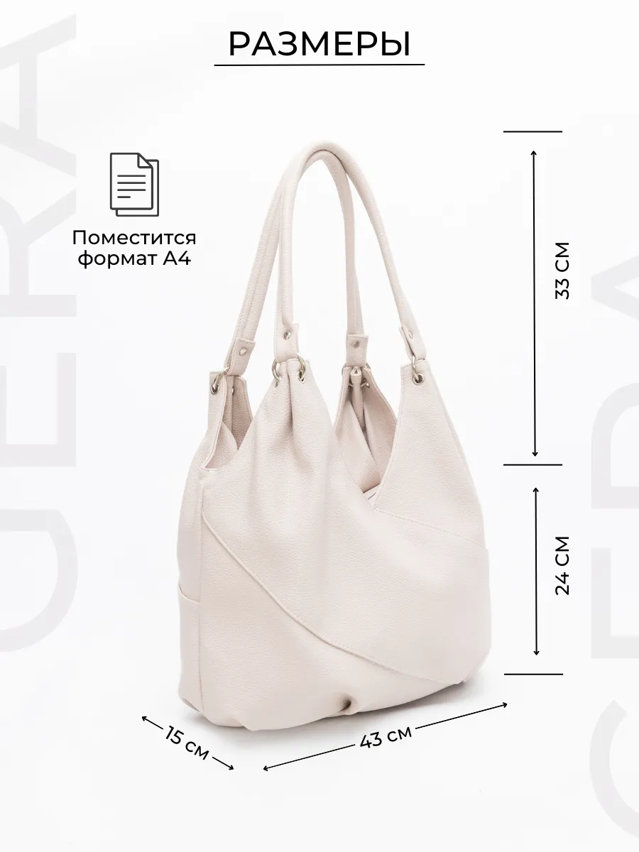 Представляем вам универсальную и стильную большую женскую сумку через плечо. Она выполнена из искусственной кожи премиум качества, что обеспечивает не только эффектный внешний вид, но и высокую износостойкость и не уступает сумкам из натуральной кожи, который комфортно можно носить на плечо или на руке. Классическая дамская сумка с двумя ручками отлично подойдет для повседневных прогулок, фитнеса, офиса или университета. Стильный дизайн деловой сумки делают ее модной и привлекательной для любого возраста как для солидных дам, так и для девушек, подростков. Вместительная сумка тоут идеально вмещает зонт, косметичку, кошелёк, документы, тетради даже кникги и тренировочную форму для фитнеса. Размеры модной сумки: 43см ширина, высота 24 см по центру, 35- высота до ручек, глубина 15 см. Одно основное отделение на молнии внутри поделено на 2 отдела перегородкой на молнии, боковые карманы для мелочей на молни и без, на задней стенке внешний карман на мол 17*13. Высота ручек 33 см по центру, 21 см от бока сумки. Вмещает формат А4 и имеет достаточно места для всех ваших вещей. Благодаря разнообразию представленных нами цветов вы сможете подобрать базовую большую сумку к любому стилю одежды. Кожаные вместительные деловые сумки всегда пользуются популярностью, ведь они сочетают в себе стиль и практичность. Размеры тоут позволят использовать ее в качестве ручной клади в поездках. Аксессуар будет идеально дополнять ваш образ как в повседневной жизни, так и на мероприятиях. Если вы ищете стильную и практичную сумку хобо для работы или учебы, эта женская сумка из эко кожи будет идеальным выбором. Будьте модными и стильными с этой великолепной стильной сумкой мешок для женщин. Элегантная сумка шоппер - прекрасный подарок на любой праздник, 14 февраля и 8 марта для любимой мамы или девушки! Женские сумки от бренда Gera - это качество российского производителя по доступной цене!