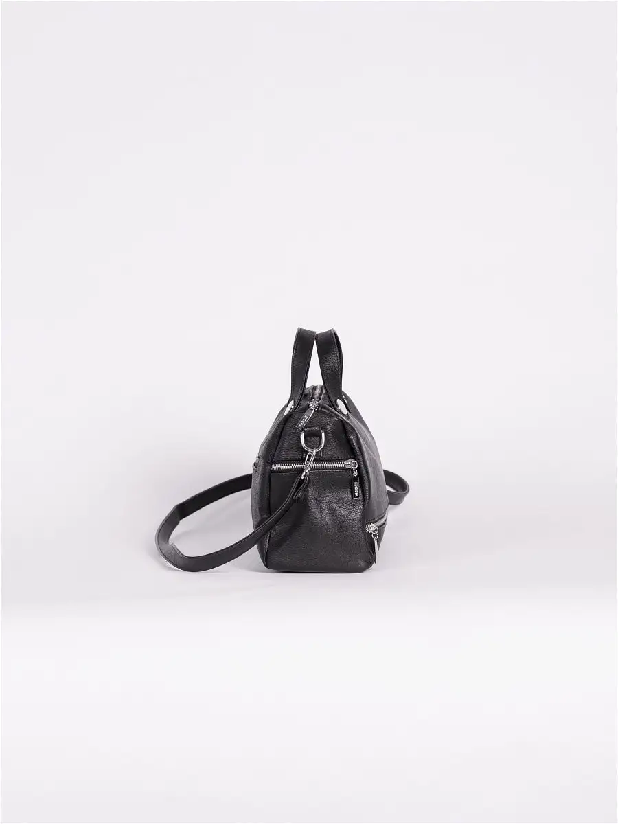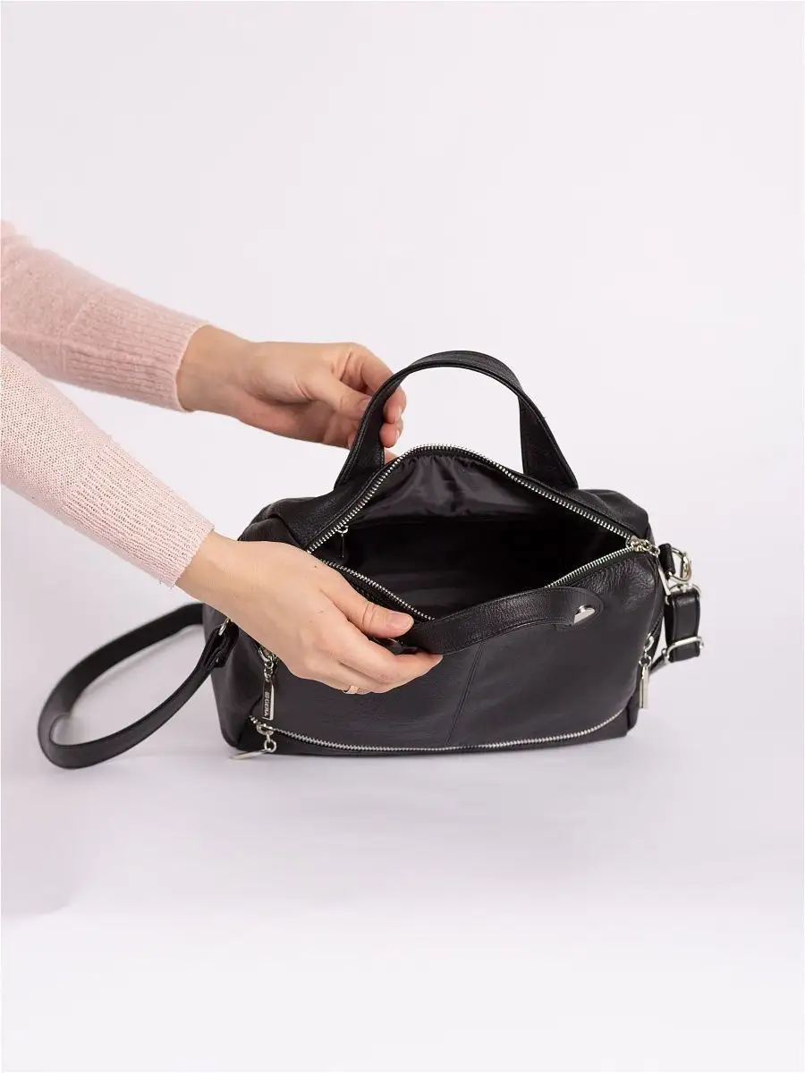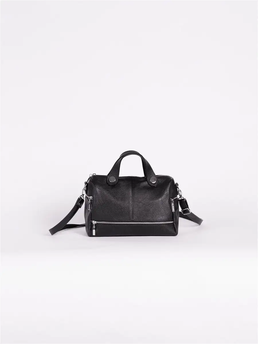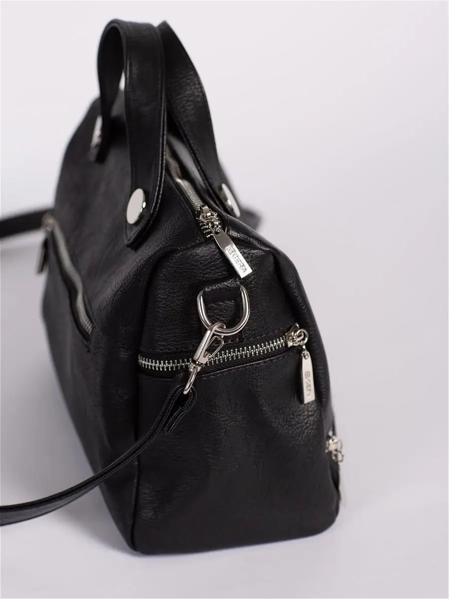 Сумка женская достаточно удобная и вместительная (размеры 22 11 28), внешний карман на задней стенке закрывается на молнию, в нем можно хранить мелкие вещи и важные аксессуары, имеются функциональные карманы по бокам. Внутри сумки два отделения на молнии, имеется карман на молнии для мобильного телефона и карманы открытого типа. Ручки, высотой 13 см, позволяют носить сумку в руках, так же для вашего удобства в комплекте есть плечевой ремень, который можно пристегнуть к сумке и отрегулировать. В целом, модель удобна и практична, поэтому идеальна для повседневного ношения. В то же время она совсем не скучная и для вечерних луков.