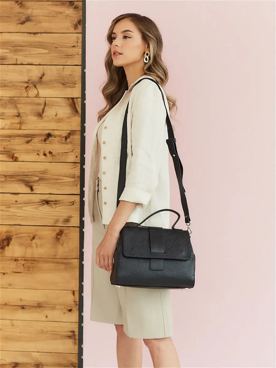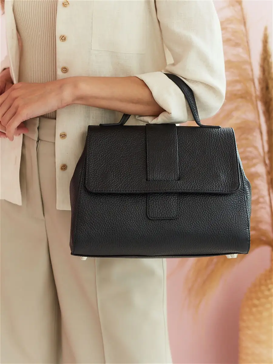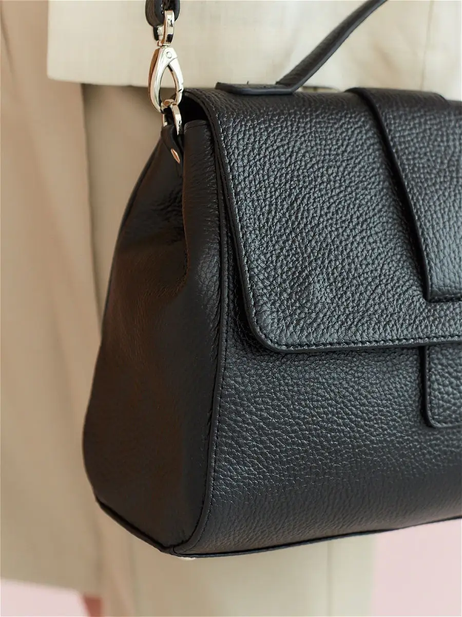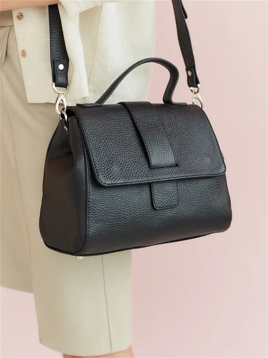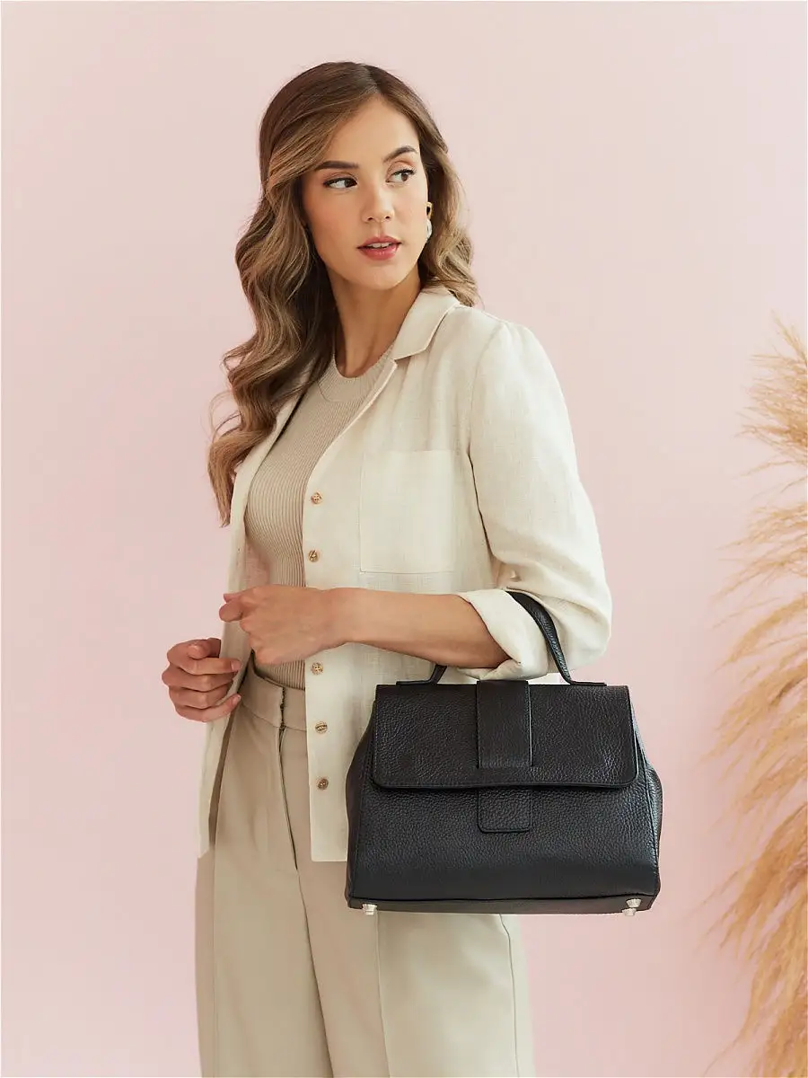 Ручка средней длины (высота 10 см) позволяют носить сумку на локте или просто в руках.