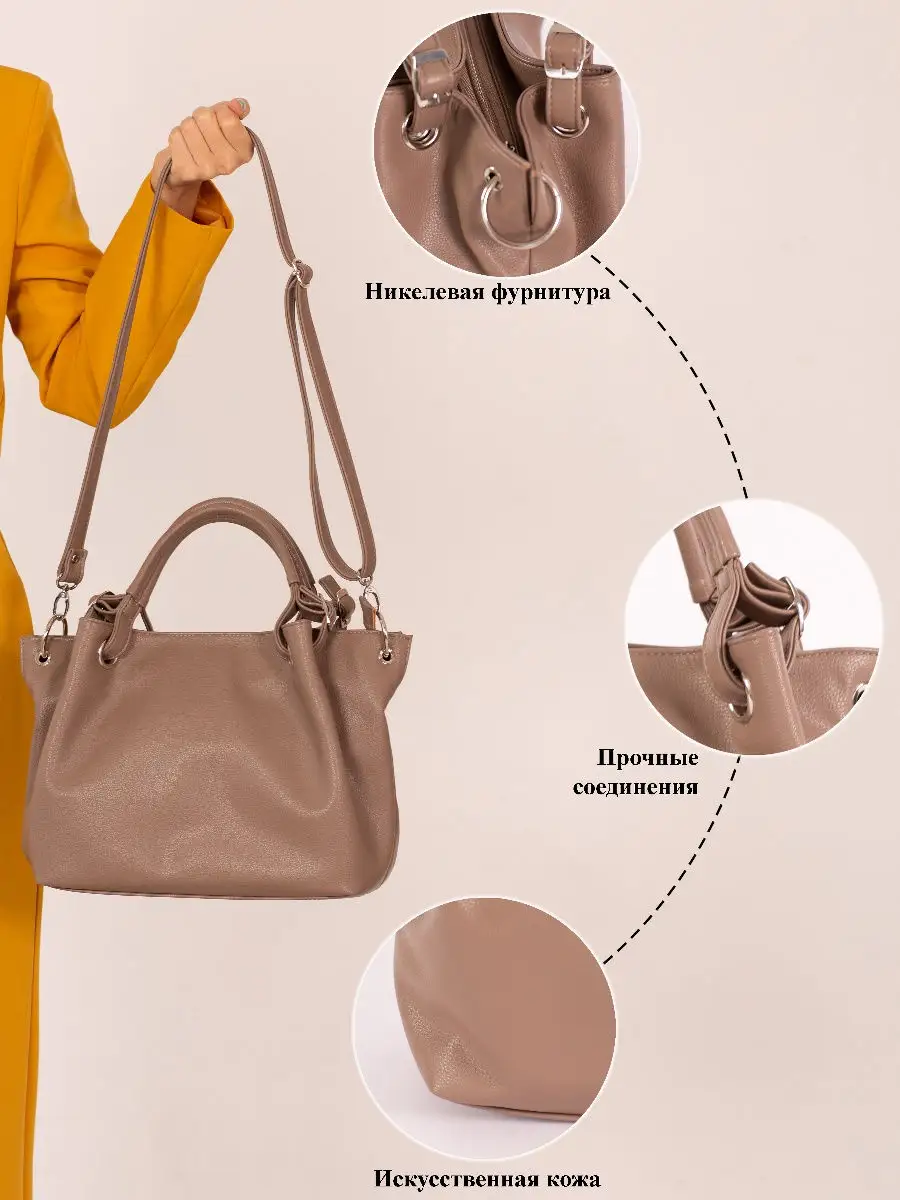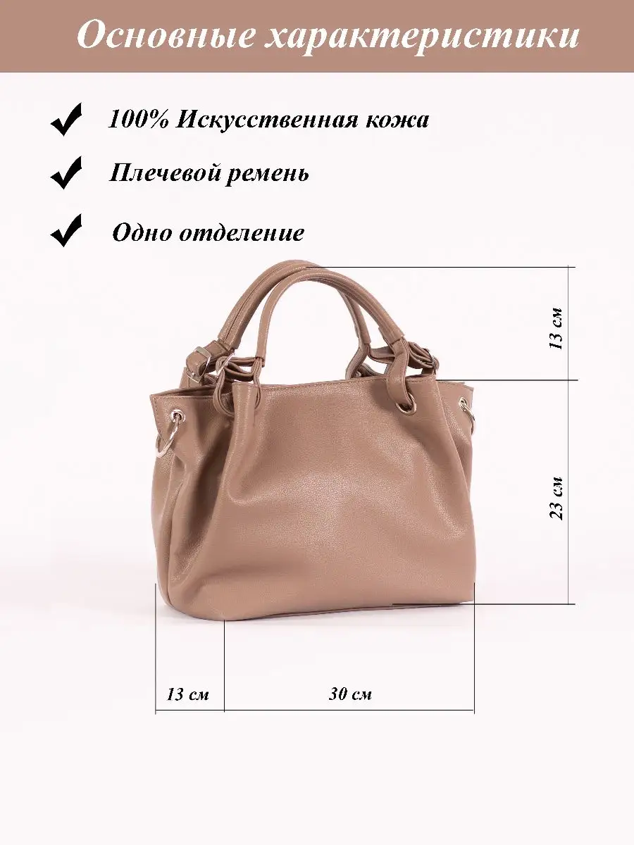 Сумка выполнена из искусственной кожи, внутри качественный текстильный подклад.
