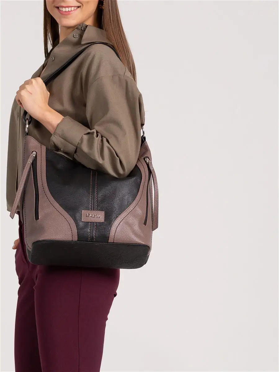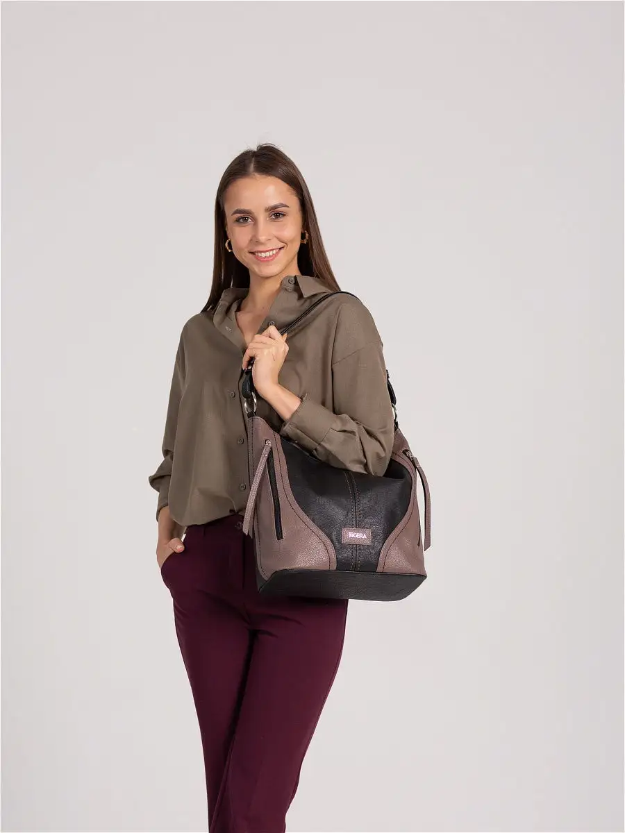 Сумка Gera, модель шопер, выполнена из искусственной кожи наилучшего качества. Аксессуар имеет по бокам функциональные карманы на молнии и на задней стенке карман на молнии, внутри: два отделения, разделенное карманом на молнии. На задней стенке большой вместительный карман на молнии, на передней стенке карман для мелочей. Ручки в данной модели позволяют носить сумку на плече, в руке или на сгибе локтя, высота ручки 30 см.Сумка идеально сочетается с платьем, джинсами, брюками, строгим костюмом, пальто и курткой. *цвет подклада может быть черным, коричневым и светлым, рисунок подклада соответвует фото.